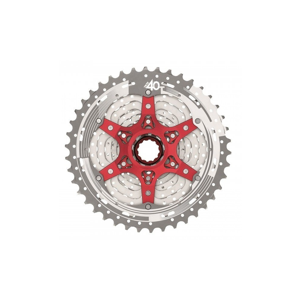 Najprecíznejšie radenie dosiahnete pri použití reťaze sunrace........ 11- kolová kazeta s dvojdielným eloxovaným ALU unášačom : 11–40 zubov, materiál pastorkov : oceľ 1-10., aluminium ALU 7075 11, patentovaná technológia Fluid Drive Plus pre plynulé radenie ALU dištančné podložky a lockring, kompatibilný so Shimano, hmotnosť: 389g
