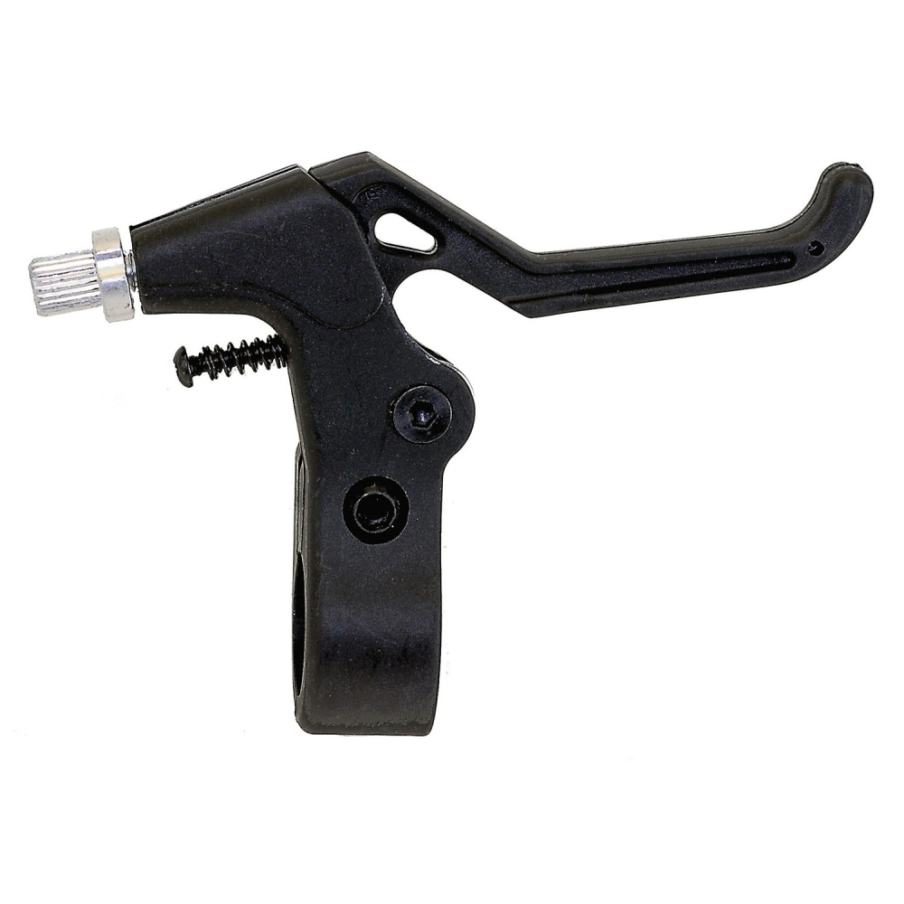 materiál plast, farba čierna, pre cantilever aj V-brzdy, s krátkym dosahom najmä pre detské bicykle, s vratnou pružinou, so skrutkou nastavenia vzdialenosti páky od riadidiel, dĺžka páky na 2 prsty, na ľavú stranu riadidiel