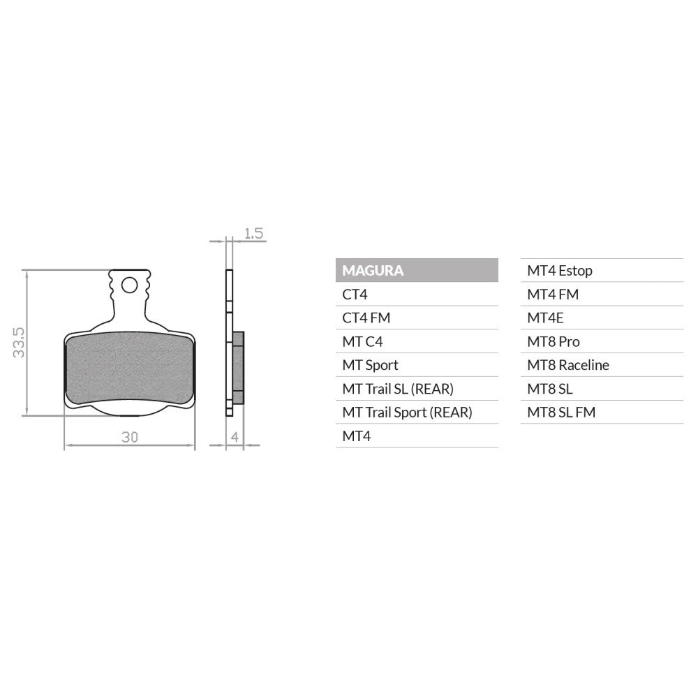 značka Quaxar, zmes organických a karbónových materiálov, karbón zaisťuje teplotnú stabilitu, pre Magura MT2, MT4, MT6, MT8, bez azbestu s vysokým statickým koeficientom odporu, výborné brzdné vlastnosti za sucha aj za mokra, celosezónne použitie, v balení 2 ks brzd.platničky