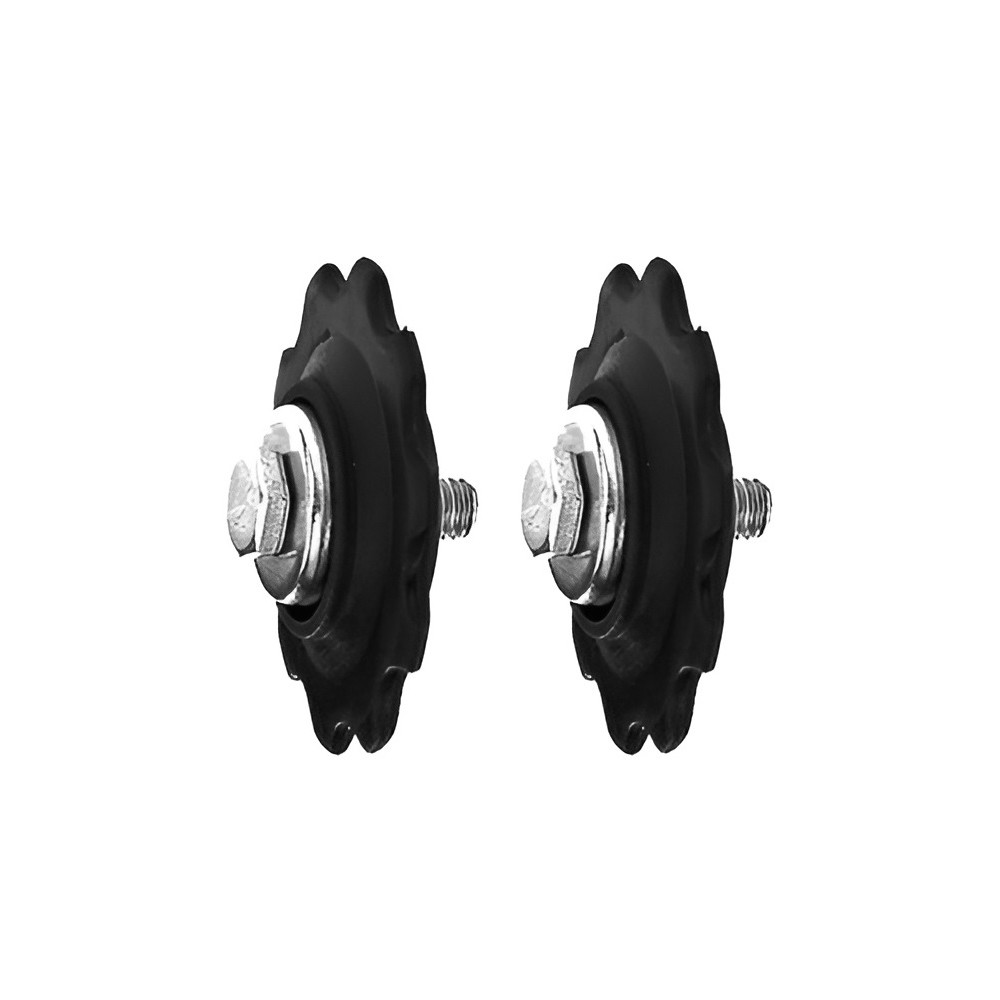 čierne, celkový priemer D= 34 mm, skrutka D= 5mm , valček vonkajší D= 8mm , 10 zubov, komplet balenie s maticami, skrutkami a prachovkami