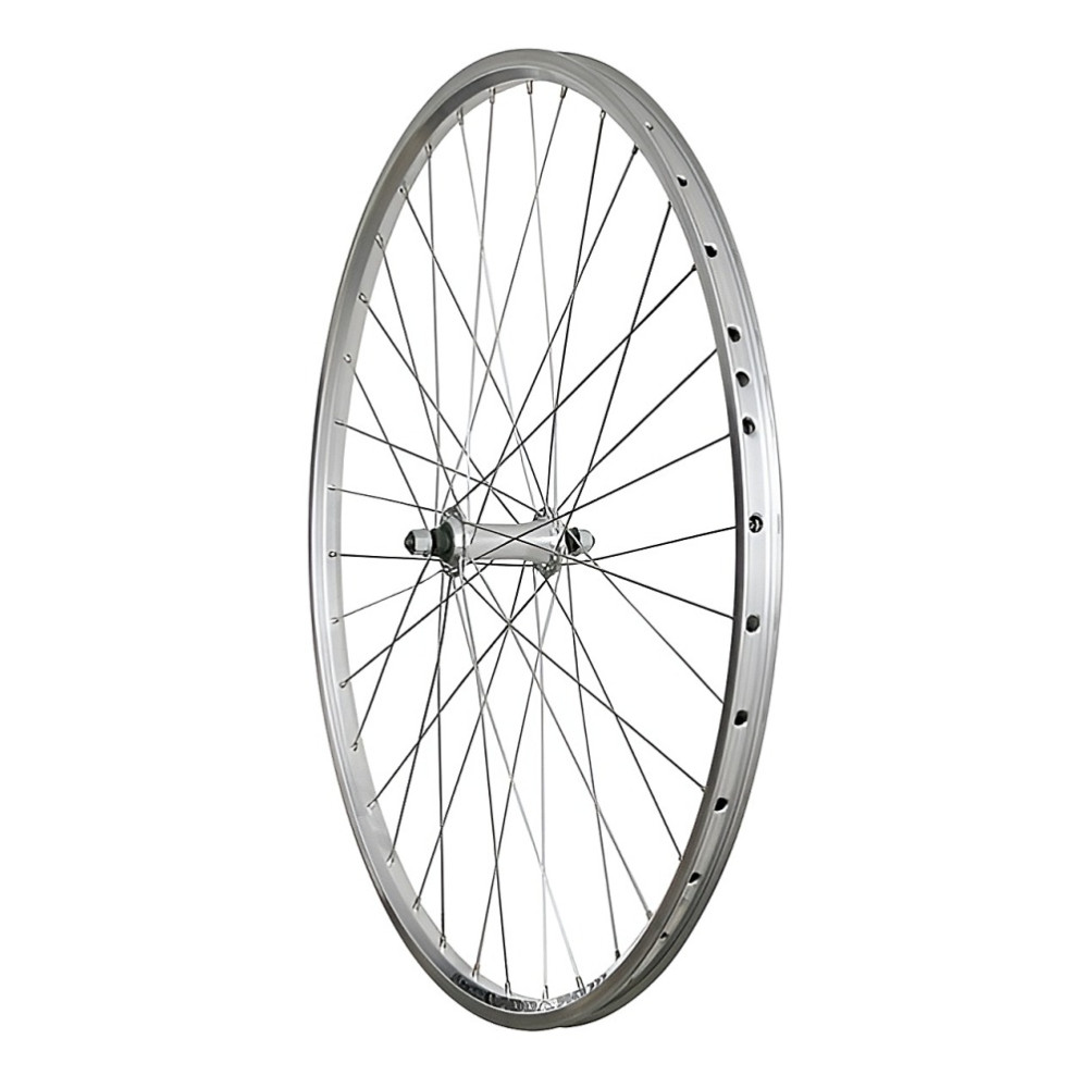 Kompletne vypletené 26 predné koleso, ráf značka Dragon-559x19 SA+GBS,36 dier, farba strieborná, materiál dural, dvojstenný nízky profil, sústružené brzdné plochy, 1x nitované otvory, rozmer 559 x 19, priemer kolesa 26 palcov, 36 dier, náboj dural strieborný na matice, špice zinkované
