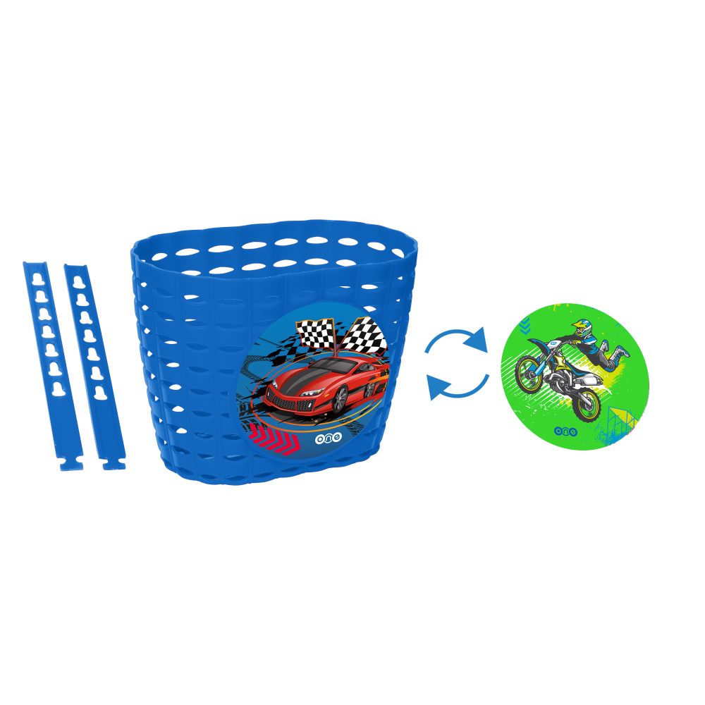 košík na riaditká detský pre 12-16 bicykle, materiál :kvalitný plast, vrátane plastových držiakov, súčasťou balenia samolepka s ďalším grafickým motívom, rozmery 190x125x140mm, objem cca. 3 litre