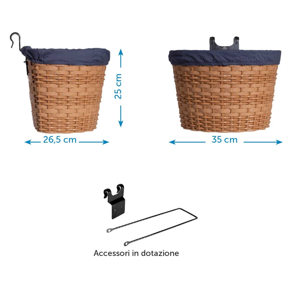 Košík predný s vnútornou výstelkou z ratanu.