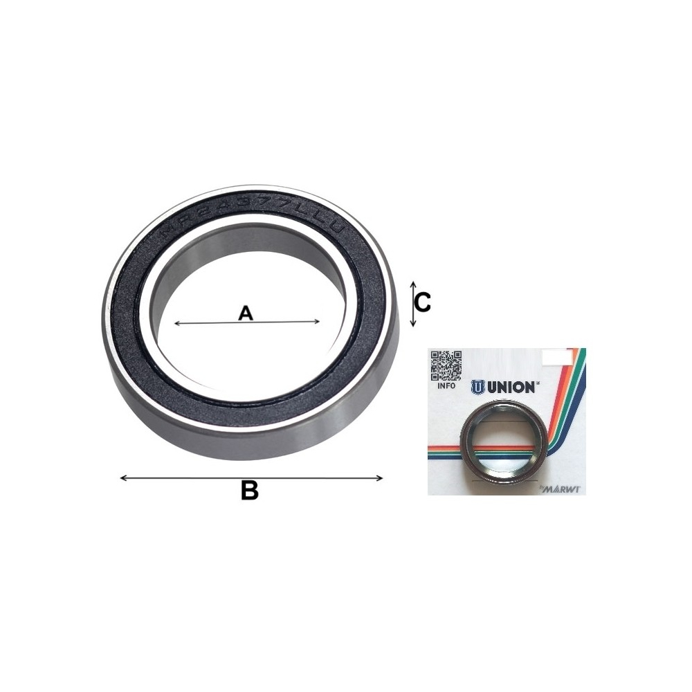 značka Union, Ložisko stredového zloženia BSA, MR24377 pre Shimano kľuky, rozmer A=24 mm, B=37 mm, C=7 mm, balené na blistri