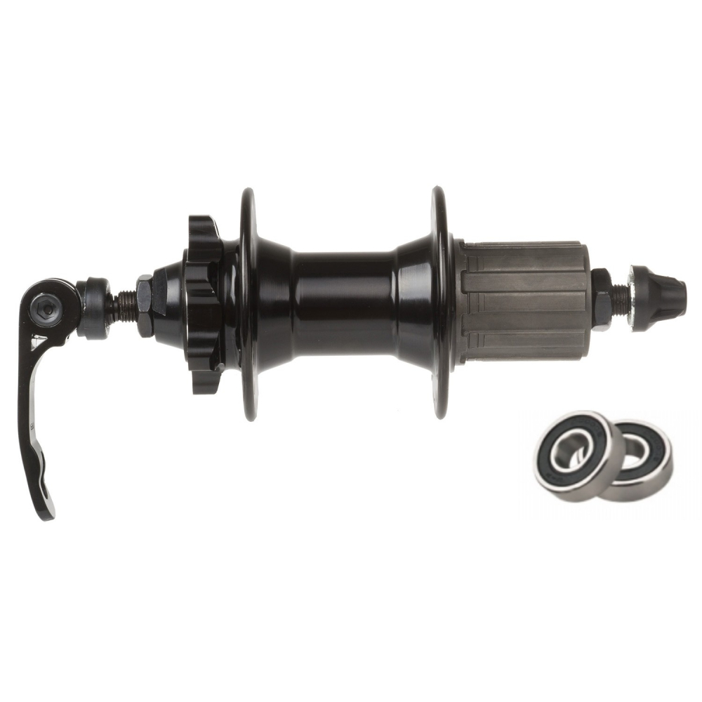 farba čierna, materiál dural, vhodný pre kotúčové brzdy, pre 8/9/10/11/12 kolo, vrátane rýchloupínača, ložiskový, dĺžka náboja 135mm, 32 dier