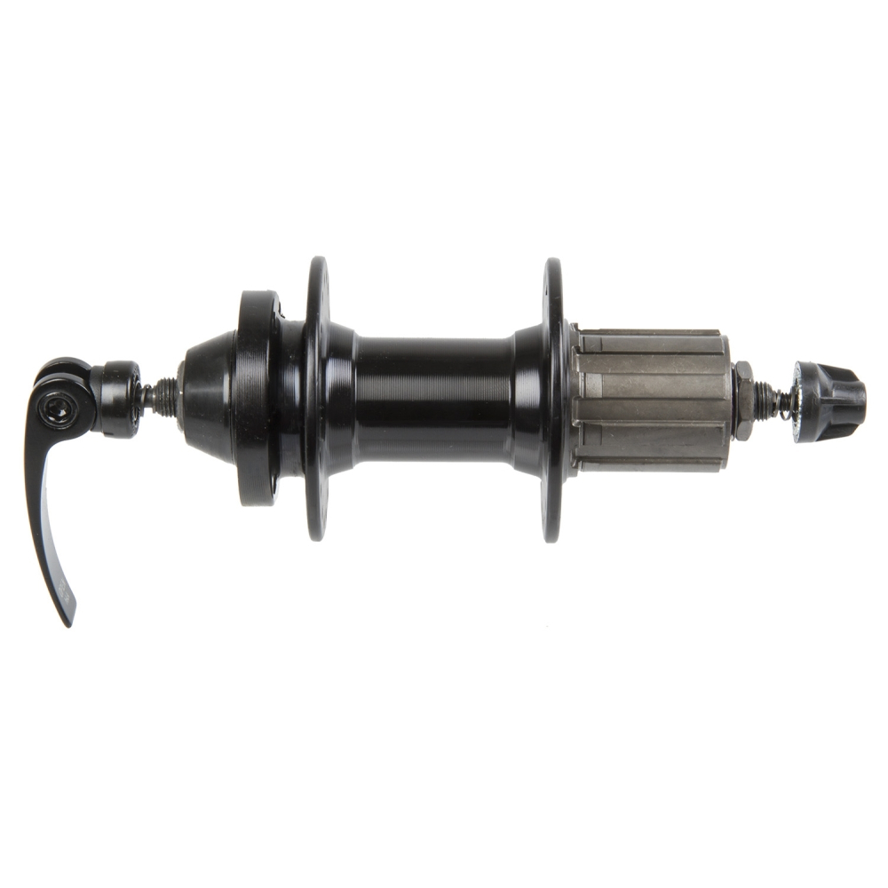 farba čierna, materiál dural, vhodný pre kotúčové brzdy, pre 8/9/10/11/12 kolo - MTB, pre 8-10 ROAD, vrátane rýchloupínača, dĺžka náboja 135mm, 36 dier