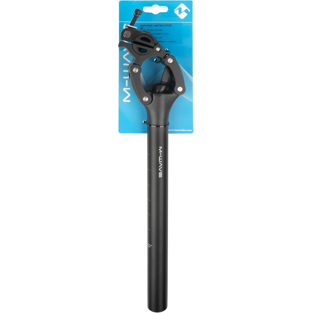 značka M-Wave Nemecko, paralelogramová, štvorpružinová, 27,2x350 mm, zdvih 20 mm, dural, z jedného kusu, so stupnicou (nastavenie výšky), nastaviteľné predpatie, veľmi citlivá odozva prostredníctvom pohybu rovnobežníka, vhodná pre jazdca do 50 až 95 kg, ale je voliteľne nastaviteľná pre iných jazdcov pomocou výmennej pružiny (90 - 120 kg)