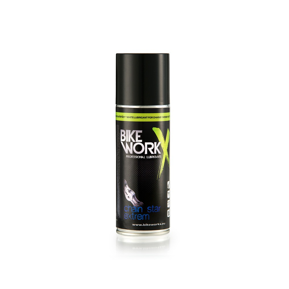 značka Bikeworkx, mazivo s označením extrém má oproti verzii normal vyšší obsah lepiacich zložiek a je preto vhodný predovšetkým na mazanie bicyklov MTB do extrémneho prostredia ako je voda,blato,sneh a pre rýchlobežné reťaze u motocyklov. Je veľmi dobre odolné voči vode.Pri správnom použití je toto mazivo bez problémov použiteľné aj do prašného prostredia. POUŽITIE: 1., reťaz dôkladne očistíme 2.,nanášame vo vzdialenosti 5-10cm 3., po 30-60sek starostlivo zotrieme prebytok maziva 4.,po vyprchaní lriedidla možeme reťaz používať