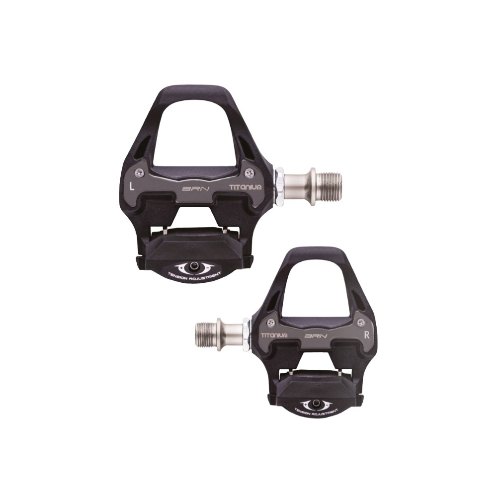 značka BRN, materiál : karbónový kompozit, titánová oska 9/16, hmotnosť 214 g/pár, vrátane nášlapných SPD kufrov, ložiskový pedál, rozmer 70x90 mm, kompatibilné so Shimano SPD systémom. Balené v krabičke.