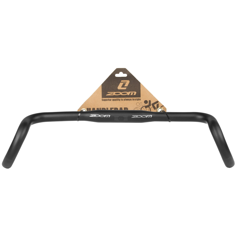 značka ZOOM, riaditko gravel, alebo turistické barany pre bikepacking výjazdy, dural s vyhnutím na vonkajšiu stranu, čierna matná farba, šírka 400 mm, spodná šírka vyhnutia 520 mm, na predstavec priemeru 31,8 mm, flare 25st.,reach 83mm, drop107mm, váha 349g, balené na karte ZOOM