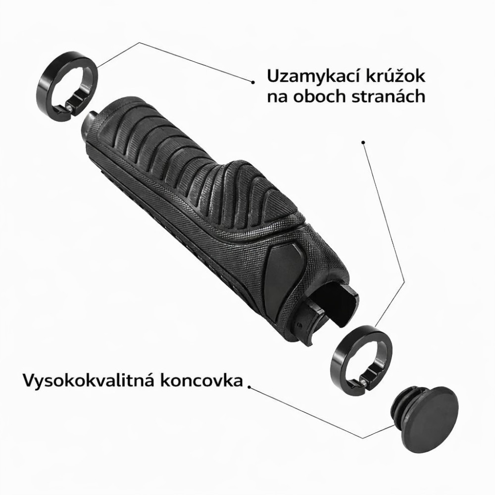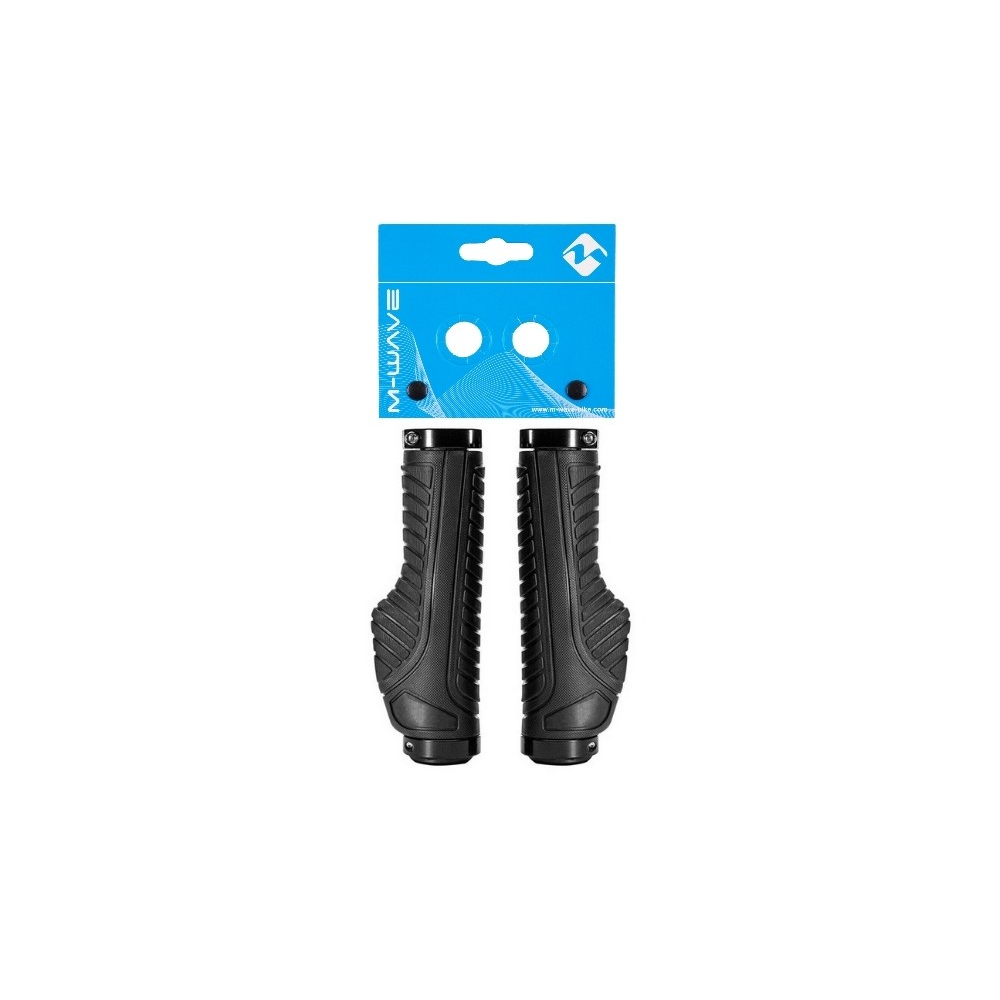 značka M-Wave, materiál - špeciálna dvojzložková zmes, prvá tvrdý plast vo vnútri pre dobré spojenie s riadidlom, druhá vonkajšia mäkká zmes pre komfort a tlmenie nárazov, na obidvoch stranách ukončenie rukoväte duralovou objímkou, farba čierno sivá, dĺžka 131 mm, jednoduché uchytenie na riadidlo pomocou imbusových skrutiek na objímkach, ktoré sú na obidvoch stranách rukoväte, s koncovými krytkami, balené na M-Wave karte