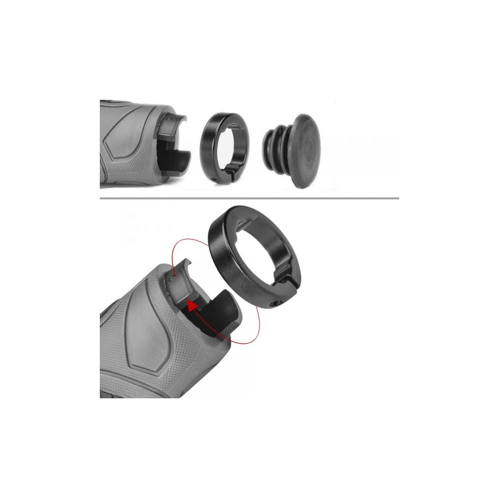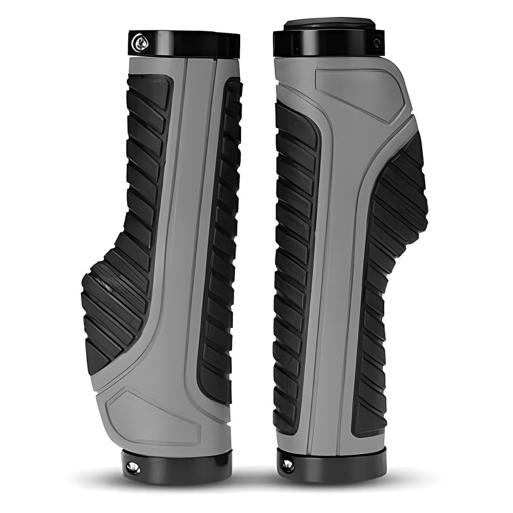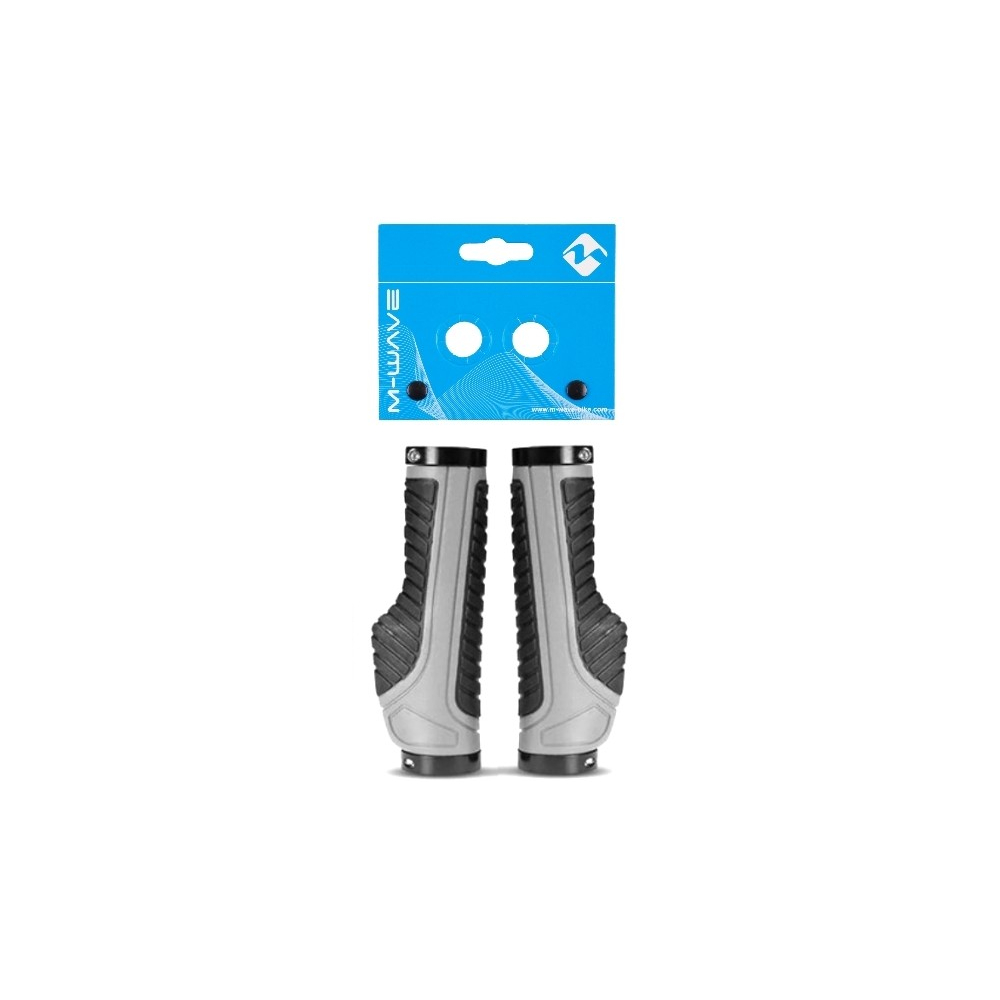 značka M-Wave, materiál - špeciálna trojzložková zmes, prvá tvrdý plast vo vnútri pre dobré spojenie s riadidlom, dve rozdielne vonkajšie mäkké zmesi pre komfort a tlmenie nárazov, na obidvoch stranách ukončenie rukoväte duralovou objímkou, farba čierno sivá, dĺžka 131 mm, jednoduché uchytenie na riadidlo pomocou imbusových skrutiek na objímkach, ktoré sú na obidvoch stranách rukoväte, s koncovými krytkami, balené na M-Wave karte