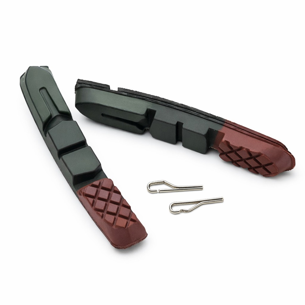 značka Promax, tovar je balený samostatne v plnofarebnom blistri , 72 mm , trojfarebné zelená časť - perfektný brzdný účinok za vlhka, čierna časť - perfektný univerzálny účinok, hnedá časť - zabezpečuje znižovanie hlučnosti pri brzdení , vhodné pre špalíky 0706014, vymeniteľné gumička - cartridge, 1 pár