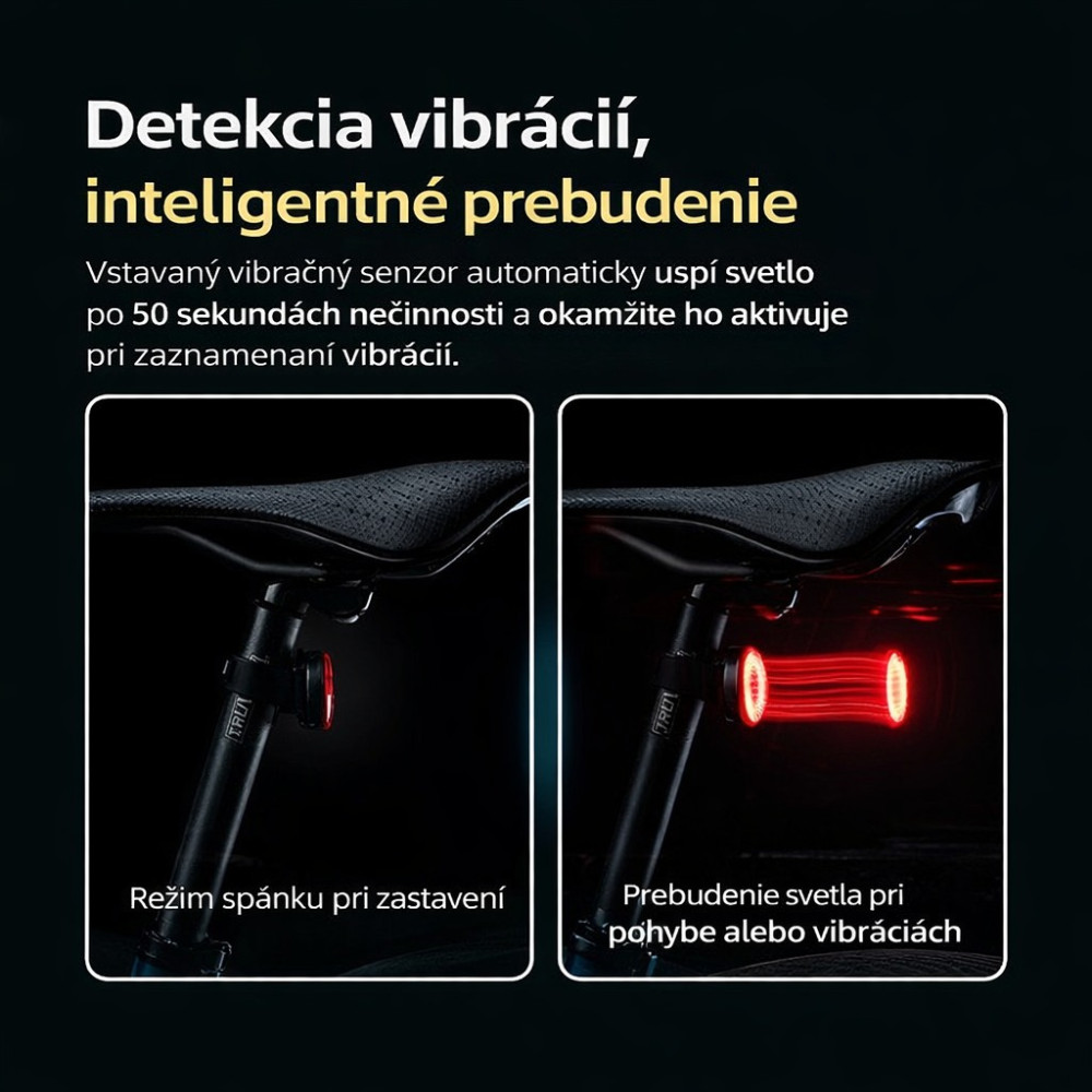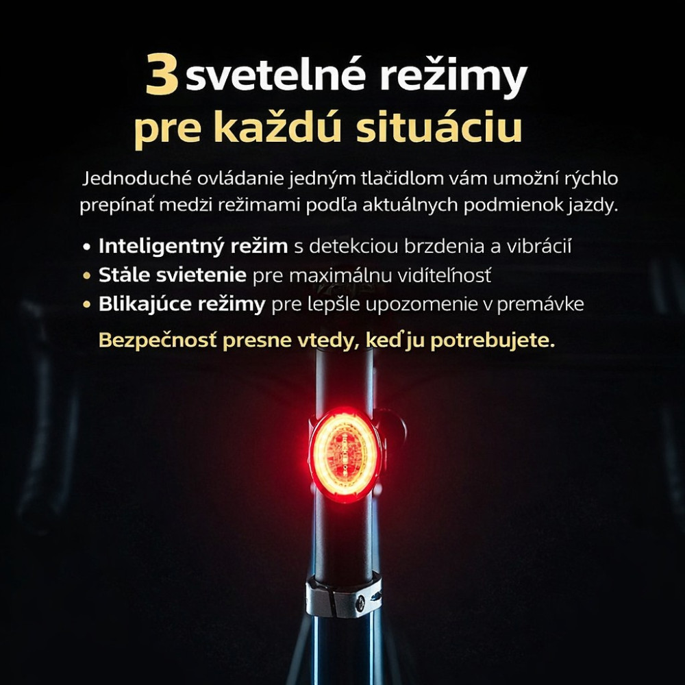 Svetlo zadné RB COB LED, IPX7, USB nabíjateľné, inteligentné . V cene výrobku je zahrnutý recykl.pop.pre SR v sume 0,1248 €/kg.