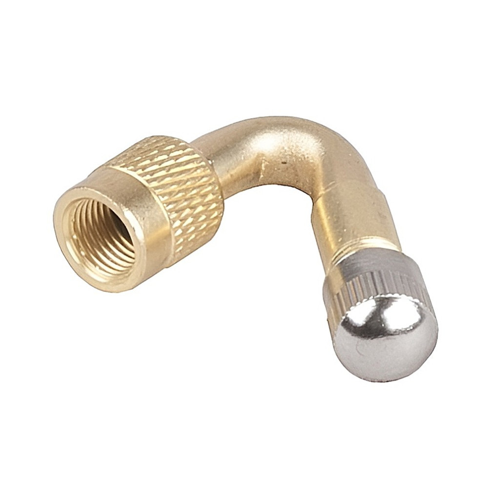 materiál mosadz, predĺženie ventilu zahnuté 45 stupňov z autoventilu na A/V ventil pre ťažko dostupné miesta. Vrátane ventilovej vložky a kovovej čiapočky