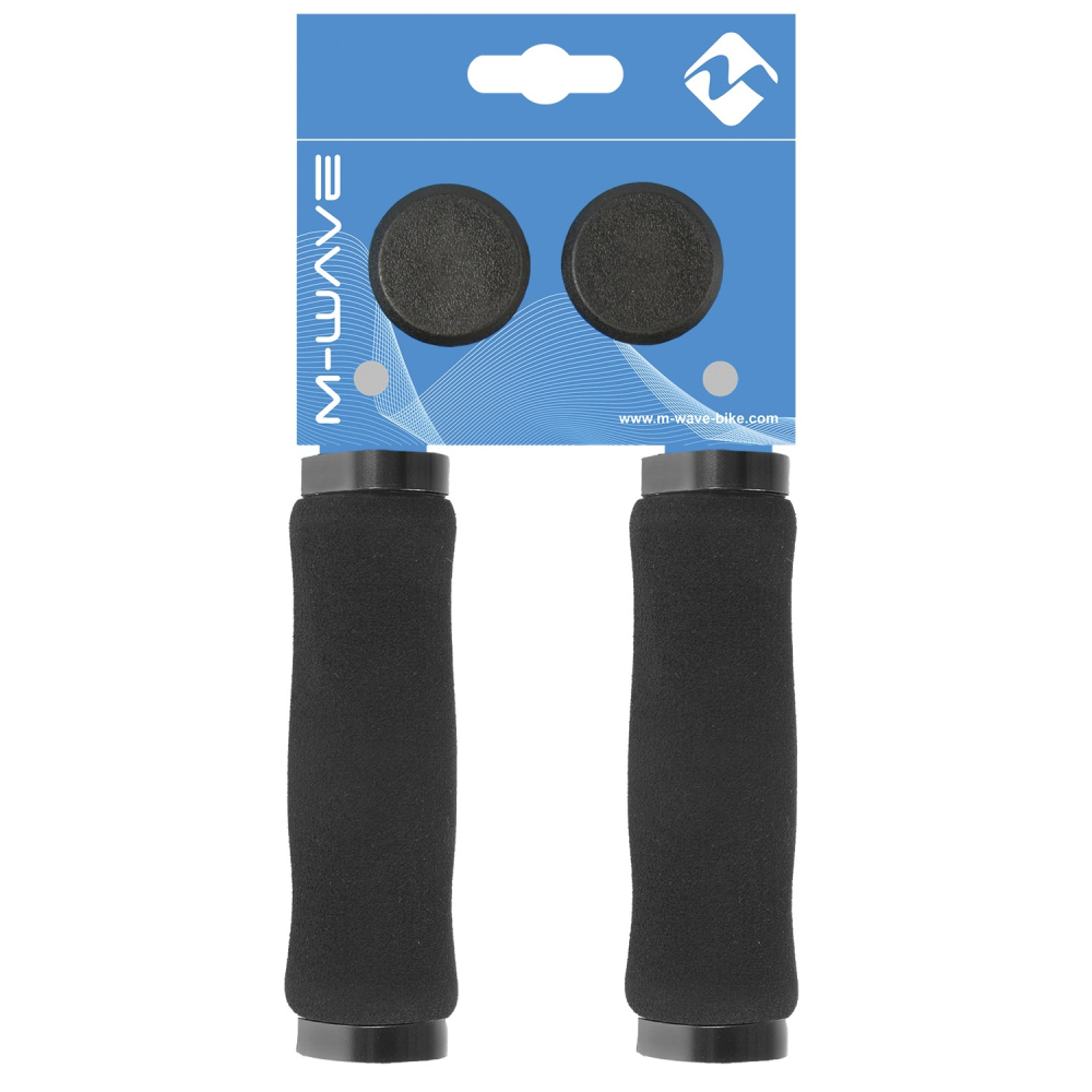 značka M-Wave Nemecko, materiál penová zmes, na obidvoch stranách ukončenie rukoväte duralovou objímkou, farba čierna penafarba čierna pena s čiernými duralovými objímkami,, dĺžka 130 mm, jednoduché uchytenie na riadidlo pomocou imbusových skrutiek na objímkach, ktoré sú na obidvoch stranách rukoväte, s koncovými krytkami