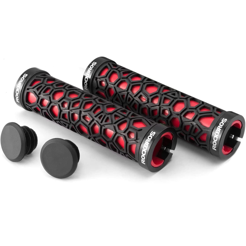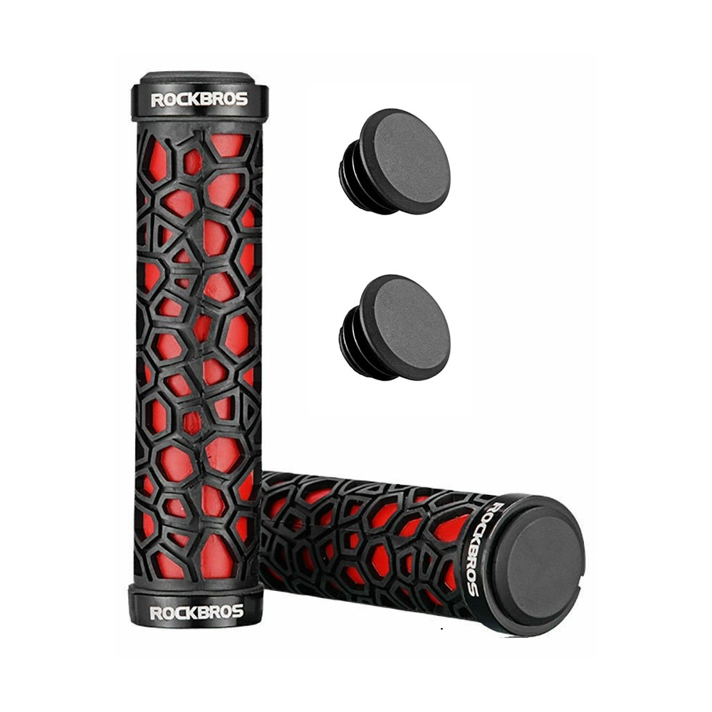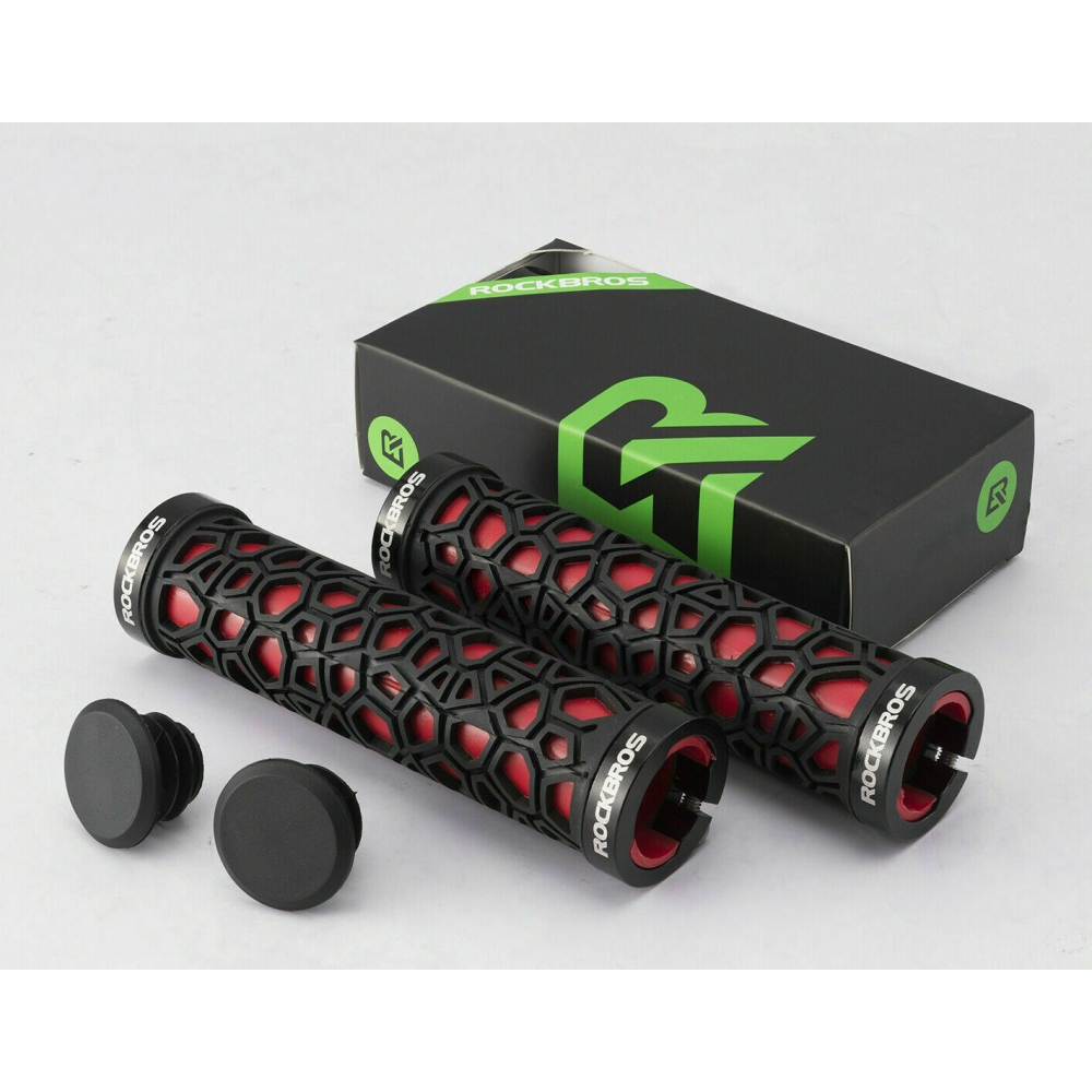 značka Rockbros, materiál špeciálna dvojzložková zmes, prvá tvrdý plast vo vnútri pre dobré spojenie s riadidlom, druhá vonkajšia gelová mäkká zmes pre komfort a tlmenie nárazov, na obidvoch stranách ukončenie rukoväte duralovou objímkou, farba čiern/červená, dĺžka 130 mm, jednoduché uchytenie na riadidlo pomocou imbusových skrutiek na objímkach, ktoré sú na obidvoch stranách rukoväte, s koncovými krytkami, balené v krabičke Rockbros