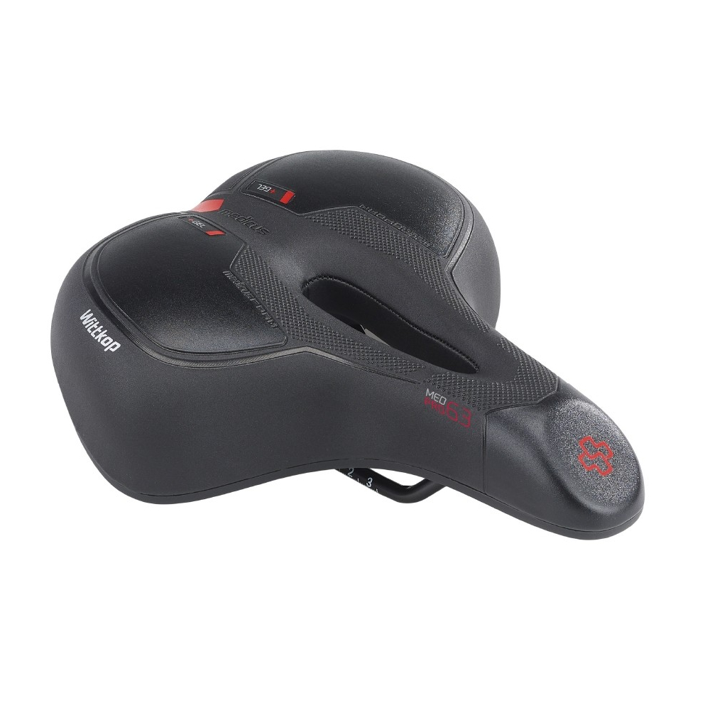 značka WITTKOP, dĺžka 260 mm, šírka 210 mm, Toto sedlo bolo vyvinuté nemeckým ortopédom Dr. Torstenom Werlom a je postavené na osvedčenom Wittkop-Medicus princípe. Nemecký výrobca Wittkop u svojich sedadiel úspešne kombinuje inovácie a tradície. Tradičná ručná výroba sedadiel zaručuje vysokú kvalitu a nové technológie maximálnu funčnosť. Taliansky vplyv je viditeľný v modernom dizajne sedadiel Wittkop. Sedlo GEL, TWIN Medicus 3.0 City s otvorom, bez zámku, navrhnuté špeciálne pre city a E bike, s anatomickými dutinami (full hole), anatomická forma v dizajne : 5 - Step