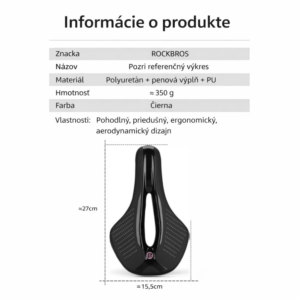 značka Rockbros – Ergonomické MTB Sedlo na bicykel tlmiace nárazy, pre mužov / ženy. Dvojitý systém tlmenia nárazov na zadnej strane sedla poskytuje silnú priľnavosť . Sedlo má úzku prednú časť, ktorá umožňuje voľný pohyb stehien počas jazdy. Stredný výrez urýchľuje cirkuláciu vzduchu a odvod tepla, aby sa znížila teplota a vlhkosť v oblasti genitálií počas jazdy. Ergonomické, aerodynamické sedlo na bicykel dokáže účinne zmierniť tlak na boky, takže môžete jazdiť dlhšie bez pocitu únavy a znecitlivenia bedier. Rozmer: 270 mm x 155 mm, Váha: 373g