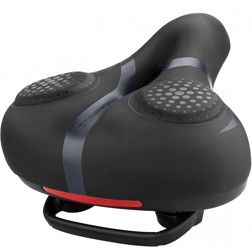 značka Rockbros – Ergonomické sedlo na bicykel s gélom tlmiace nárazy, pre mužov / ženy. Dvojitý systém tlmenia nárazov na zadnej strane sedla poskytuje silnú priľnavosť . Sedlo má úzku prednú časť, ktorá umožňuje voľný pohyb stehien počas jazdy. Stredný výrez urýchľuje cirkuláciu vzduchu a odvod tepla, aby sa znížila teplota a vlhkosť v oblasti genitálií počas jazdy. Ergonomické, aerodynamické sedlo na bicykel dokáže účinne zmierniť tlak na boky, takže môžete jazdiť dlhšie bez pocitu únavy a znecitlivenia bedier. Sedlo je vybavené dvoma elastomermi, dvoma 8cm gélovými spotmi, rukoväťou, červenou odrazkou a pamäťovou penou. 100% vodotesný povrch sedla. Vrátane zámku sedla Rozmer: 260 mm x 215 mm, Váha: 771g