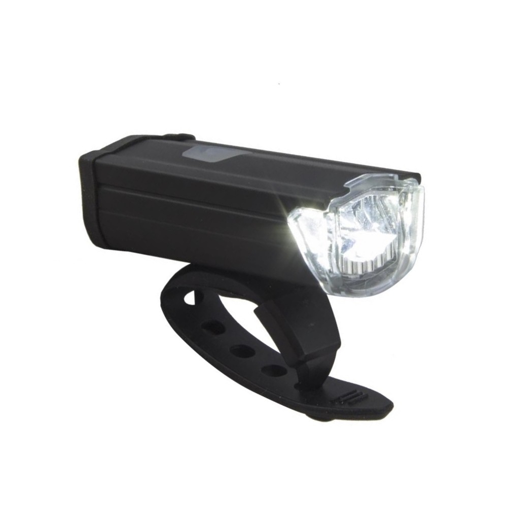 značka MPB, Svetlo predné nabijateľné cez USB. 1 super svietivá 3 Watt biela dióda 200 lumenov, 3 Funkcie : 100% svieti, 50% svieti, bliká-OFF.Montáž bez náradia, červený indikátor slabej batérie, Počas nabíjania svieti zelená kontrolka a keď zhasne, batéria je nabitá. Vrátane USB nabíjacieho kábla a driažku na riadidlá. Doba nabíjania 2 hodiny. Nabíjateľné lítiové batérie : 3,7V 480 mAh.