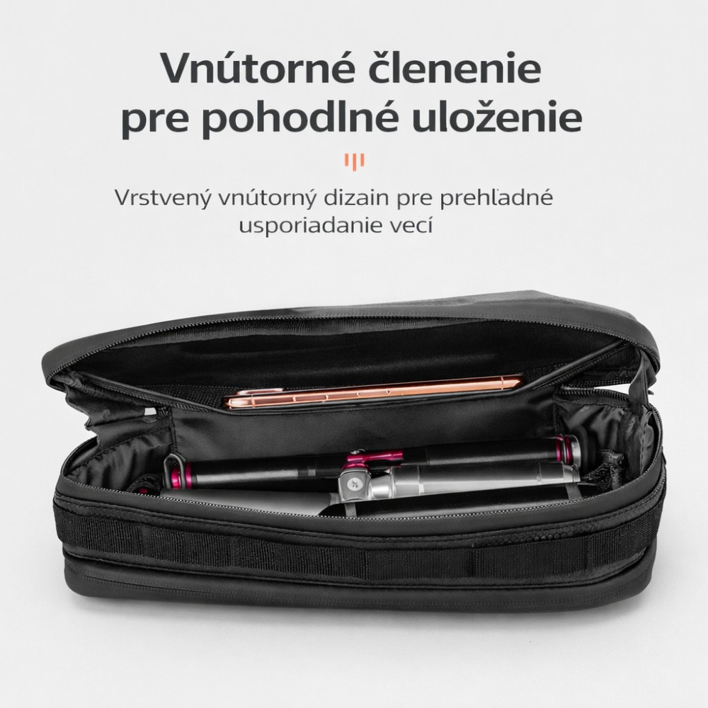 značka Rockbros, Taška na hornú rámovú trubku, kapacita 1,5l. Ponúka dostatok priestoru pre váš mobilný telefón, kľúče, náradie, mini pumpu, duše atď. Ideálne na každodenné bicyklovanie. Taška na rám bicykla je vodeodolná. Dokáže ochrániť vaše veci v miernom daždi. Jednoduchá inštalácia,pomocou 3 nastaviteľných suchých zipsov môžete tašku rýchlo pripevniť. Je vyrobená z polyuretánu (PU) + etylénvinylacetátu (EVA). Je odolná voči opotrebovaniu a trvácna. Kapacita 1,5litra, hmotnosť 215g, rozmer 29x10x9 cm.