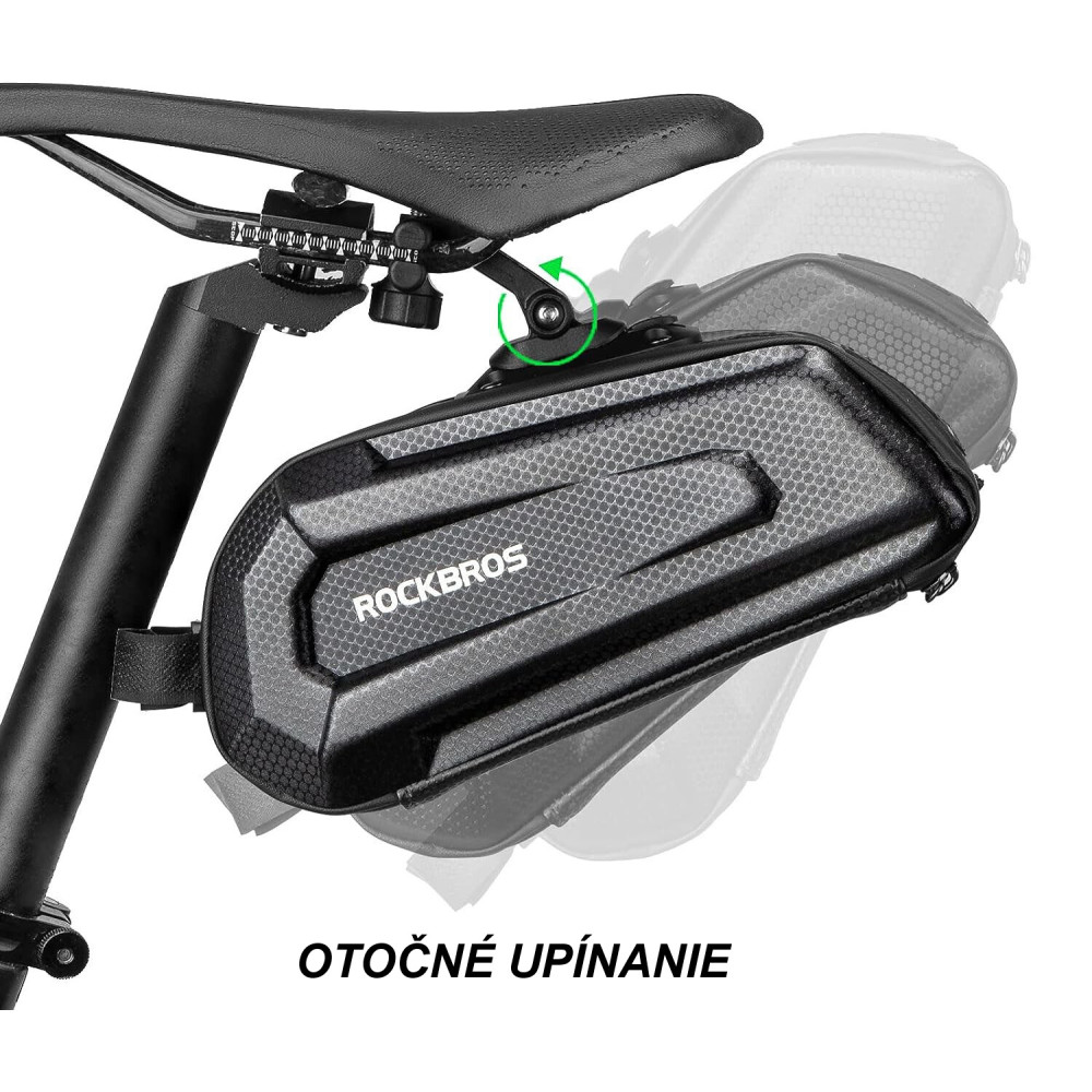 značka Rockbros, Taška podsedlová, kapacita 1,7l. Ponúka dostatok priestoru pre váš mobilný telefón, kľúče, náradie, mini pumpu, duše atď. Ideálne na každodenné bicyklovanie. Taška podsedlová bicykla je vodeodolná. Dokáže ochrániť vaše veci v miernom daždi. Jednoduchá inštalácia,pomocou držiaku a suchého zipsu môžete tašku rýchlo pripevniť. Je vyrobená z polyuretánu (PU) + etylénvinylacetátu (EVA). Je odolná voči opotrebovaniu a trvácna. Kapacita 1,7litra, hmotnosť 210g, rozmer 24x10x8 cm.