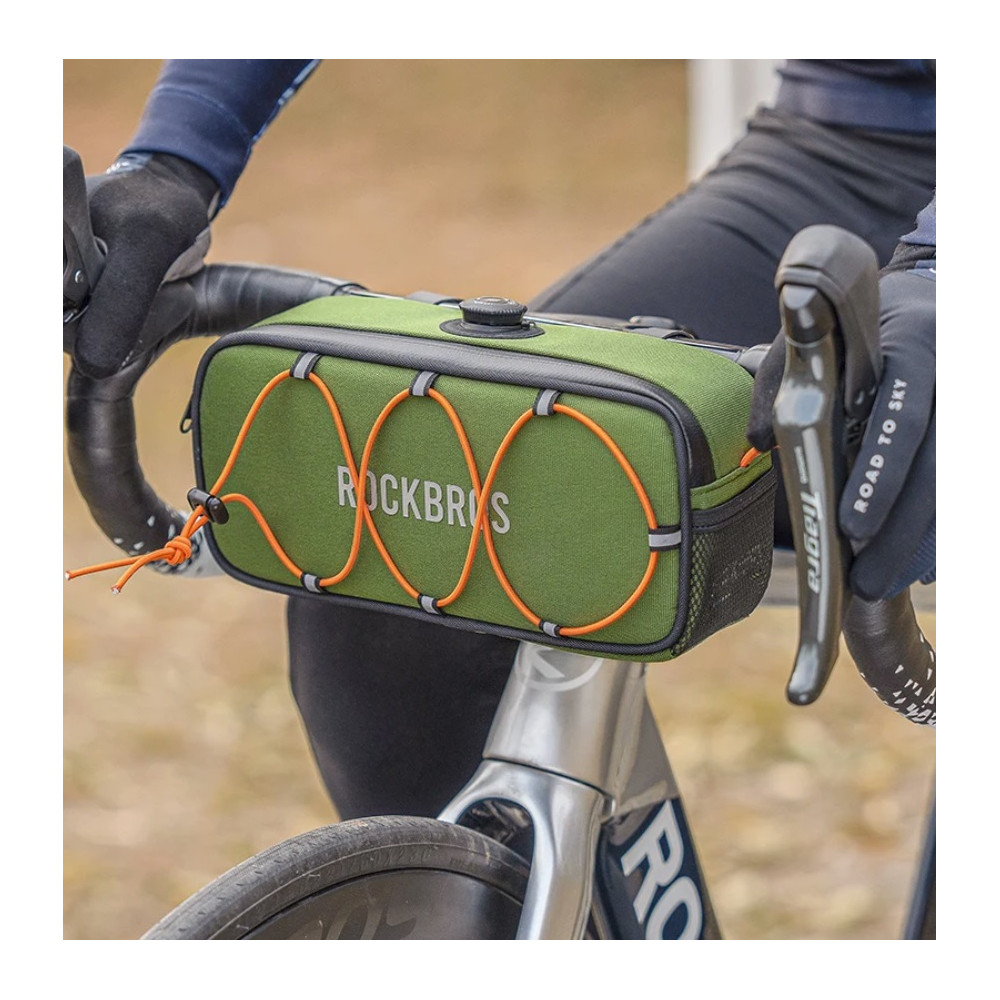 značka Rockbros, Taška na riadidlá, kapacita 1,9l. Taška má vlastný upevňovací systém RockFit od Rockbrosu, ktorý sa ľahko inštaluje a fixuje pomocou tlačidla. Systém umožňuje pripevniť tašku na riadidlá bezpečne, pevne a nárazuvzdorne. Ponúka dostatok priestoru pre váš mobilný telefón, kľúče, náradie, mini pumpu, duše atď. Ideálne na každodenné bicyklovanie. Taška na riadidlá bicykla je vodeodolná s vodotesnými zipsami. Dokáže ochrániť vaše veci v miernom daždi. Jednoduchá inštalácia,pomocou držiaku a suchého zipsu môžete tašku rýchlo pripevniť. Je vyrobená z polyuretánu (PU) + etylénvinylacetátu (EVA). Je odolná voči opotrebovaniu a trvácna. Kapacita 1,9litra, hmotnosť 251g, rozmer 25,5x8x15 cm.