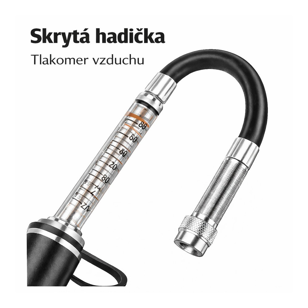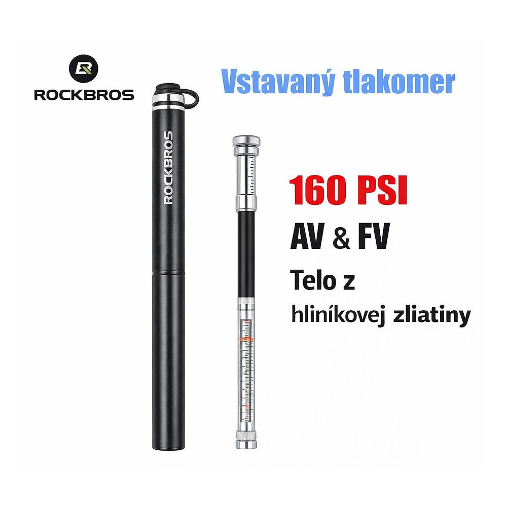 značka ROCKBROS, pumpa mini vysokotlaká 160 PSI s tlakomerom a hadičkou pre všetky typy ventilov pre MTB, cestné bicykle, E-bike.Vynikajúci výkon, najvyšší tlak vysokotlakej pumpy môže dosiahnuť 160 PSI, takže môžete rýchlo a ľahko nafúknuť pneumatiky. Materiál z hliníkovej zliatiny je veľmi odolný, voči opotrebovaniu a korózii. Na hlave a na konci hustilky sú protiprachové krytky zabraňujúce vnikaniu dažďovej vody. Číselník je veľký a dokáže jasne zobraziť tlak vzduchu . Vstavaná hadička, pri použití ju vyberte z konca hustilky a nainštalujte ju na hlavu. Držiak pumpy sa dá nainštalovať pod košík fľaše bicykla, zaberá málo miesta a neovplyvňuje používanie fľaše. Pumpa sa dodáva s hadičkou na hustenie ventilu Presta a Schrader. Predvolené nastavenie je Schrader, ktorý sa po otočení a potiahnutí zmení na presta.