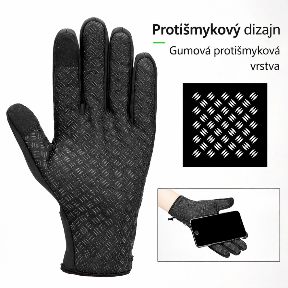 značka Rockbros, protišmykové nepremokavé plnoprsté, veľkosť XL, rukavice sú vyrobené z ľahkého priedušného a elastického flisového materiálu s elastickou šnúrou na chrbte ruky, palec a ukazovák s kontaktnou plochou pre ovládanie dotykových telefónov. Dlaň a prsty sú vybavené silikónovým protišmykovým povrchom. Rukavice sú vhodné do chladných podmienok. Poznámka: Veľkosti týchto rukavíc sú ázijské, ktoré sú menšie ako európske. Vyberte si správnu veľkosť podľa tabuľky. Balené na karte RB