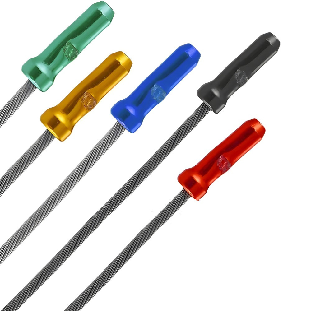 značka Quaxar. Anodizované koncovky radiaceho a brzdového lanka,1,6 mm a 2,1 mm, dural 5 farieb ( modrá, červená, zlatá, čierna, zelená ) balené po 50 ks/farba, celkovo 500 koncoviek, v plastikovom boxe
