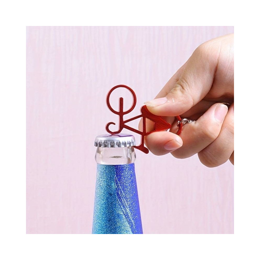 vyrobené z eloxovaného duralu, možné použit ako otvarak fliaš, uzáver flaše sa vkladá medzi sedlo a riaditko, v tvare bicykla, sada obsahuje 12 ks, balené v sáčku na karte