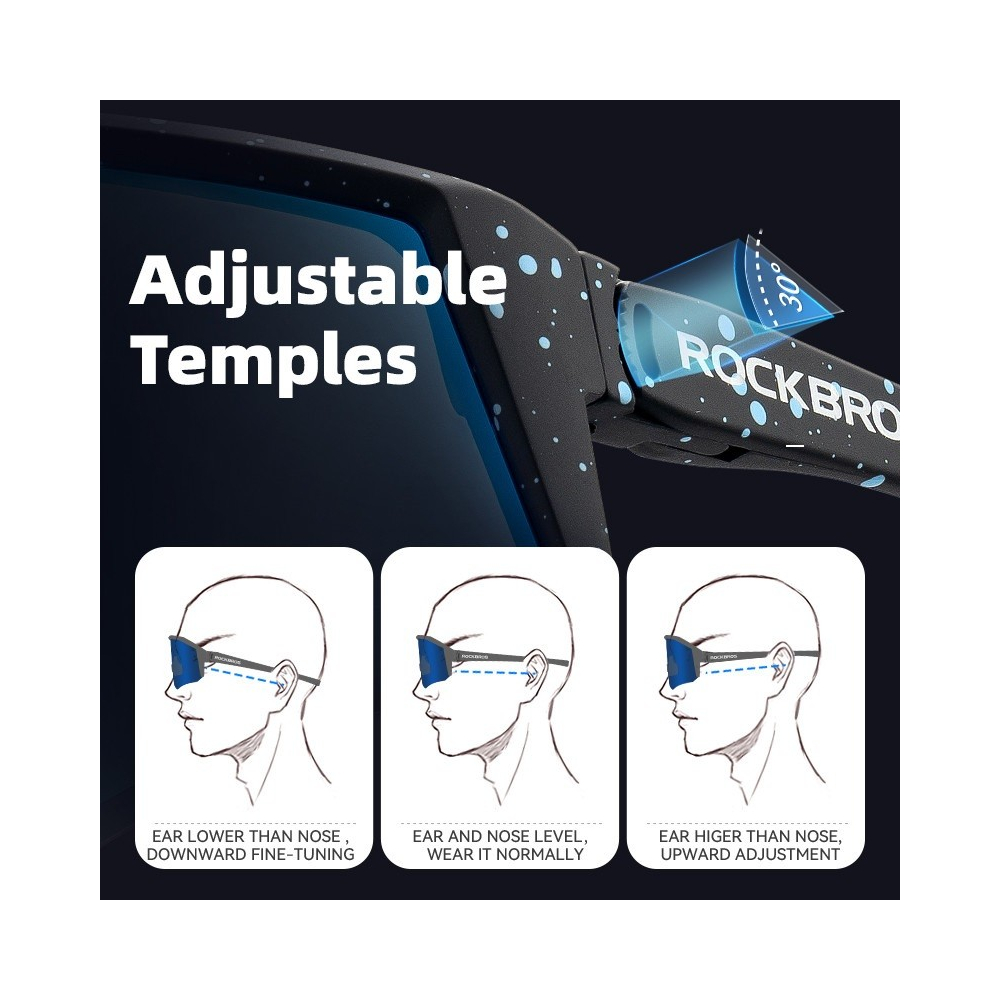 značka Rockbros, okuliare polarizačné sklo s iridíovou vrstvou, nastaviteľné ramienka podľa typu tváre. Zjasňujú videnie, chránia od oslnenia, nepríjemných odrazov pri silnom slnku. Napríklad oslnená vozovka po daždi. S ochranou UV400. Rámik vyrobený z TR 90 materiálu. Balenie obsahuje okuliare, handričku z mikrovlákna, vrecko z mikrovlákna, tvrdé ochranné púzdro okuliarov, polarizačný tester. Hmotnosť 17g.