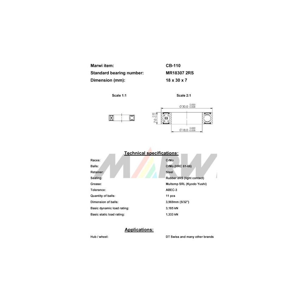Ložisko 18307, 18x30x7 do predného náboja, ks