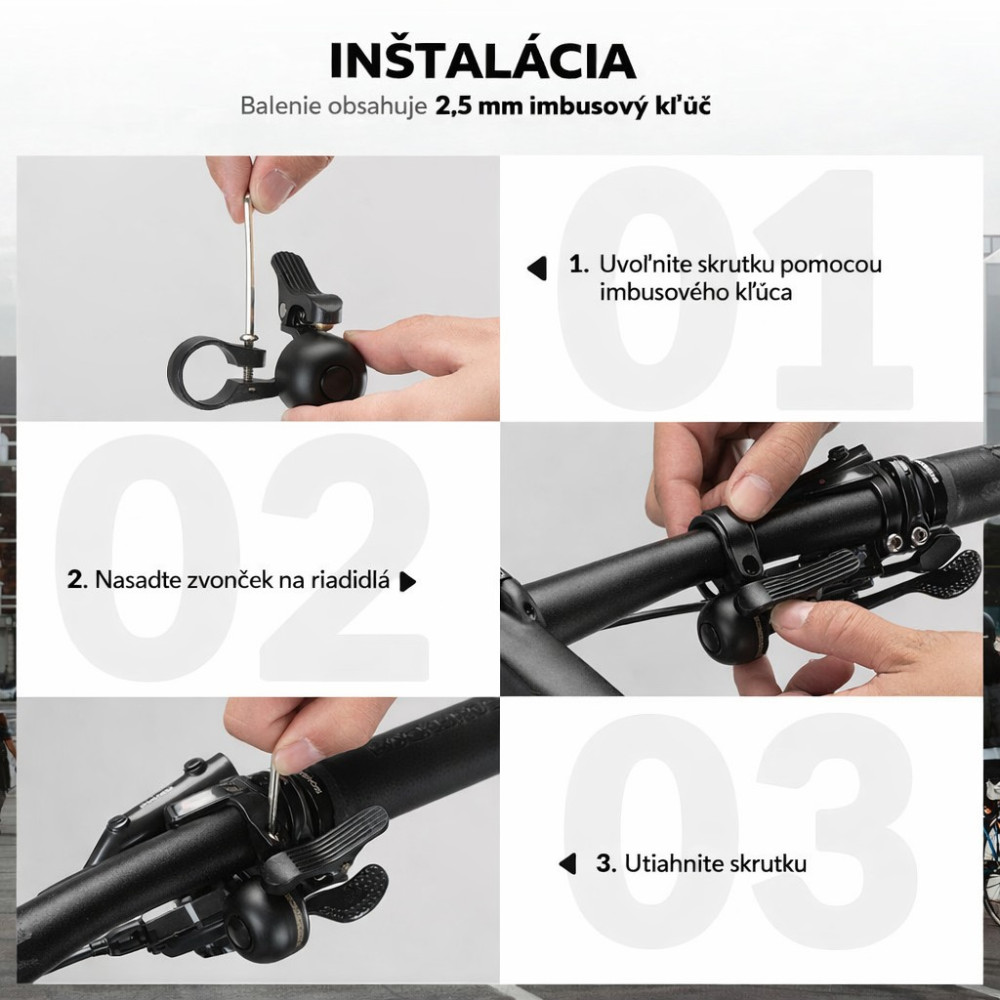 Zvonček RB, Classic, čierny, ľavý 100 Db, bronz