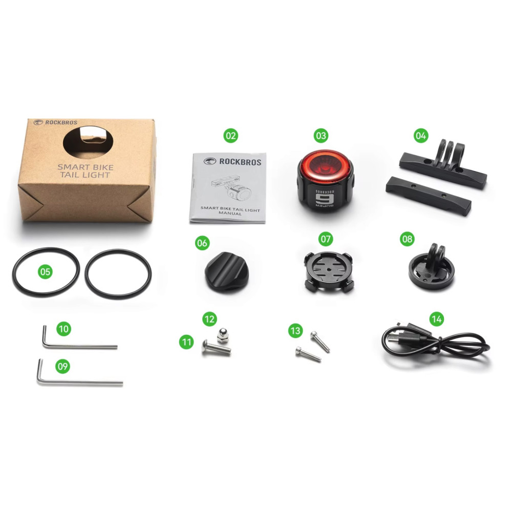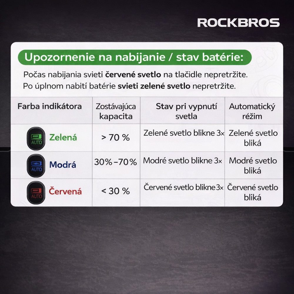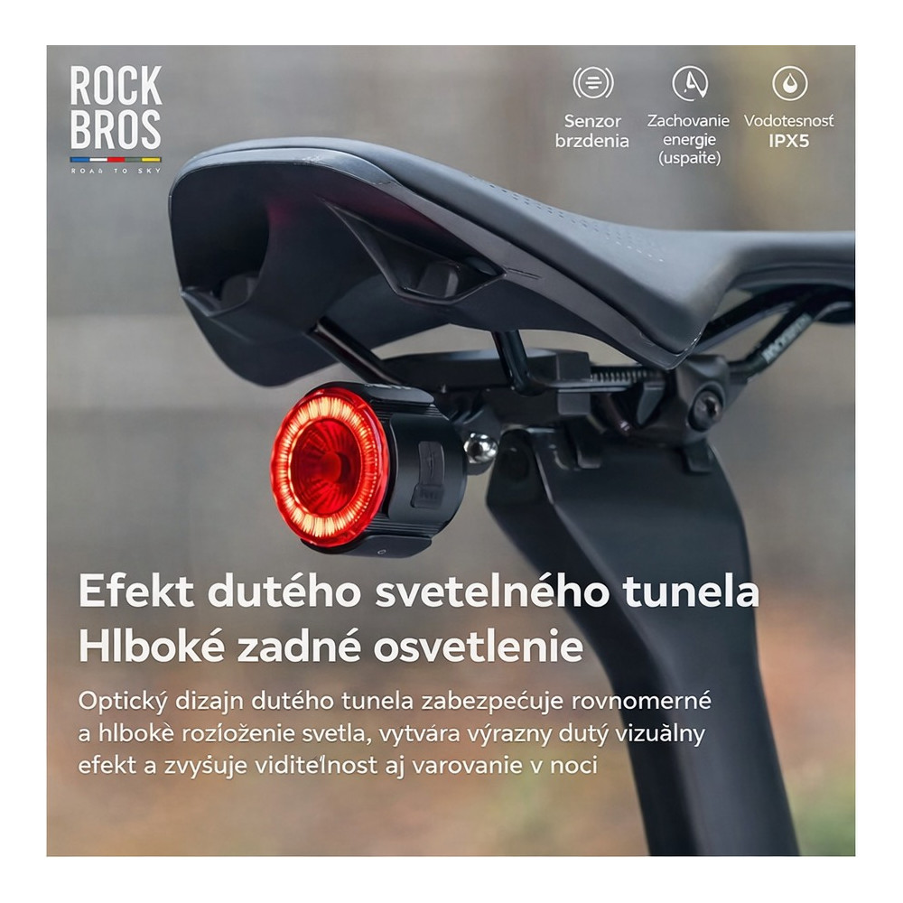 Svetlo zadné RockBros, 25 Lm, IPX5, 6 Funkcií, USB nabíjateľné. V cene výrobku je zahrnutý recykl.pop.pre SR v sume 0,1248 €/kg
