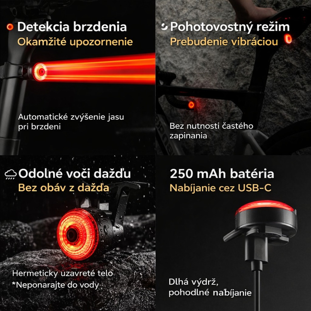 Svetlo zadné RockBros R0, 20 Lm, 5F, IPX6, USB nabíjateľné, vodeodolné. V cene výrobku je zahrnutý recykl.pop.pre SR v sume 0,12