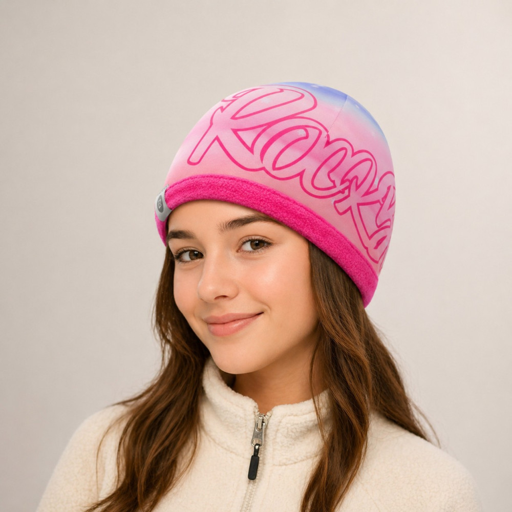 Zimná detská termo čiapka Rockbros z polarfleecu, s krytím na uši, ružová