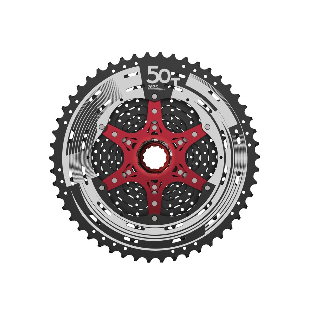 Najprecíznejšie radenie dosiahnete pri použití reťaze sunrace........ 12- kolová kazeta s dvojdielným eloxovaným ALU unášačom : 11-50 zubov, materiál pastorkov : oceľ 1-10., aluminium ALU 7075 11-12, patentovaná technológia Fluid Drive Plus pre plynulé radenie ALU dištančné podložky a lockring, kompatibilný so Shimano, hmotnosť: 586g