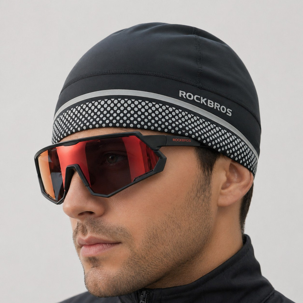 Značka RockBros – čiapka Alladin, alebo vložka do prilby pre mužov i ženy. Vyrobená z elastánu a mikrofleesu s reflexnými prvkami po celom obvode čiapky. Univerzálna veľkosť. Čiapka sa vyznačuje strečovým dizajnom s krytím hlavy a uší. Ideálna ochrana pred studeným vetrom na bicykli, behu, turistike ... Materiál čiapky (3M Thinsulate, Solartec technology) odvádza pot a zabraňuje prehrievaniu, alebo prechladnutiu hlavy.