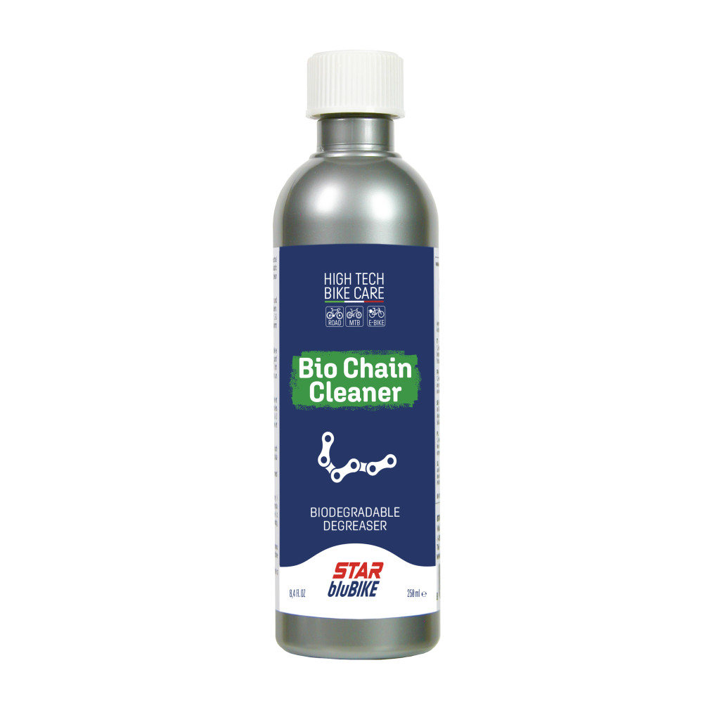 značka STAR bluBIKE, BIO CHAIN CLEANER je biologicky odbúrateľný čistiaci prostriedok na mazivá získaný z prírodných extraktov. Tento čistiaci prostriedok je ideálny pre cyklistické reťaze,kazety,meniče a na komponenty, ktoré sú premazávané olejom alebo vazelínou. Je špeciálne navrhnutý na efektívne čistenie reťazí, pričom neškodí životnému prostrediu. Tento typ čističa je vyrobený z prírodných, rozložiteľných zložiek, ktoré sa v prírode odbúravajú bez zanechávania škodlivých zvyškov. Neobsahuje škodlivé chemikálie ako klasické čističe, ktoré môžu znečisťovať pôdu a vodu. Bez problémov odstraňuje nečistoty, mastnotu, vazelínu a starý olej z reťaze a ďalších častí bicykla, čo zaručuje hladký a tichý chod. Šetrí povrchy, ako sú kovy, plast a guma, čím predchádza ich poškodeniu alebo opotrebeniu. Môže sa aplikovať priamo na reťaz alebo do práčky reťazí, čo zjednodušuje samotný proces čistenia. Po použití sa zložky rýchlo a efektívne rozkladajú, čo minimalizuje negatívny dopad na prírodu. Tento produkt je ideálnou voľbou pre cyklistov, ktorí dbajú na ochranu životného prostredia a zároveň chcú udržať svoj bicykel v perfektnom stave. Objem 250 ml.