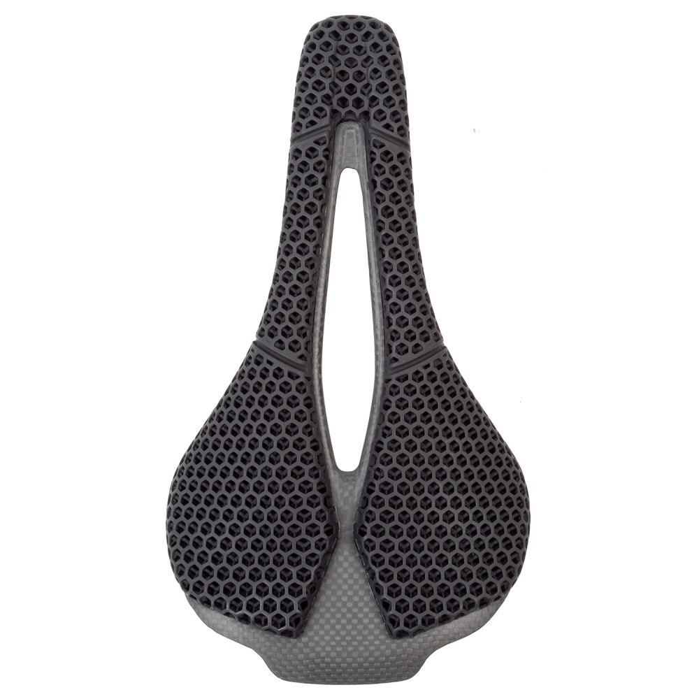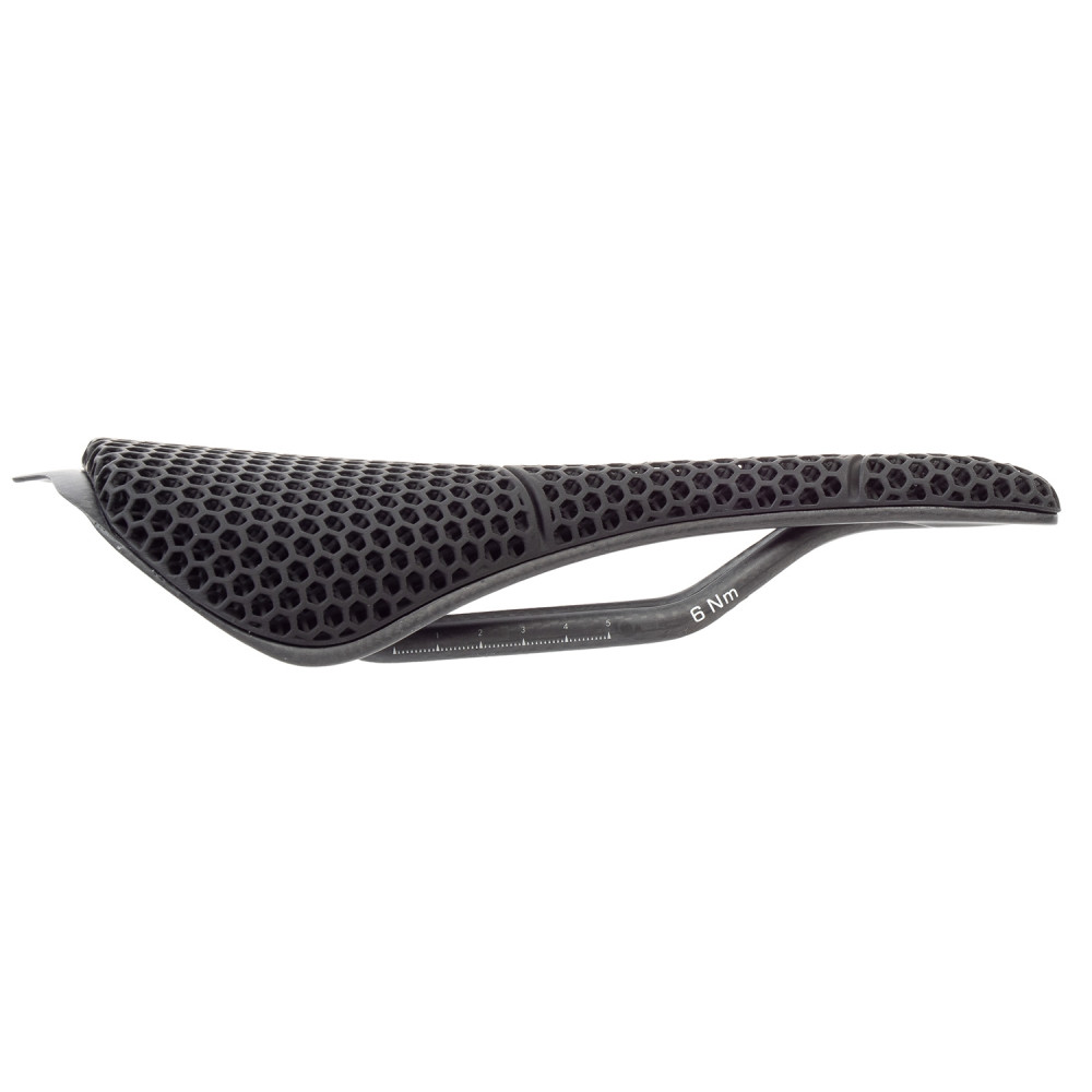 Karbónové sedlo z 3D tlačiarne, s otvorom, dlžka 252 mm, šírka 140 mm, hmotnosť 165 g . Je navrhnuté tak, aby poskytovalo výnimočné pohodlie a zabezpečovalo prietok krvi do mäkkých tkanív pri jazde v nízkej, aerodynamickej polohe. Nahradením peny 3D technológiou sa znížil tlak na sedacie kosti. Túto technológiu vyvinuli 3D tlačou tekutého polyméru, ktorý dokonale kopíruje anatómiu sedacích častí. Tento revolučný proces vytvára komplexnú štruktúru voštiny, ktorá umožňuje ladiť hustotu materiálu spôsobom, ktorý je pri pene, alebo géloch nemožný. Ergonomický výrez je navrhnutý tak, aby maximalizoval prietok krvi. Jedinečný tvar sedla umožňuje zachovať pohodlie aj v pretekárskej, aerodynamickej polohe. Sedlo je vybavené karbónovými lyžinami a navrhnuté tak, aby vám poskytlo optimálny prenos energie a zároveň vám zabezpečilo pohodlie pri extrémnych situáciach.