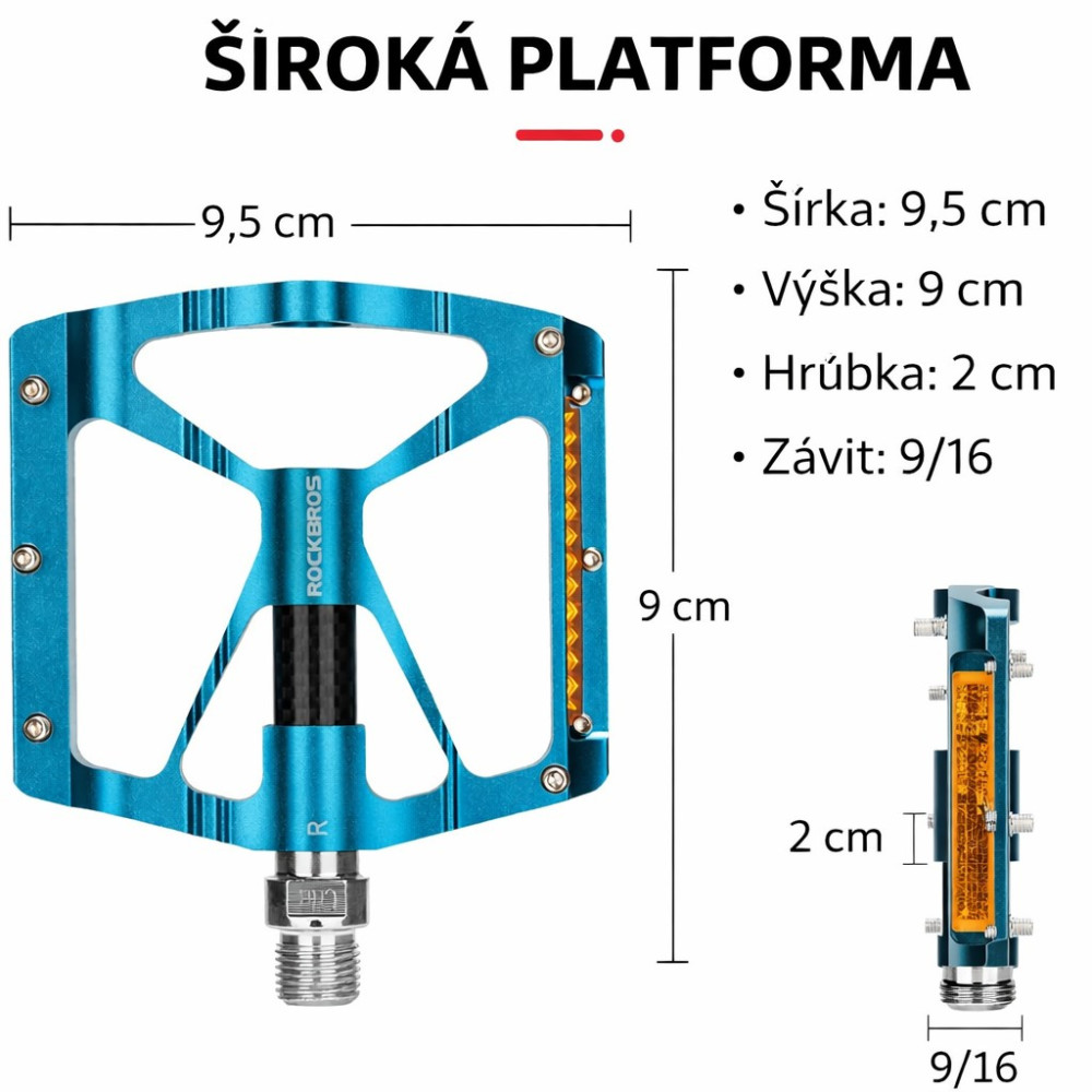 Pedál RockBros, PL,LSL Flat Al, 9/16 s odrazkami, modrý