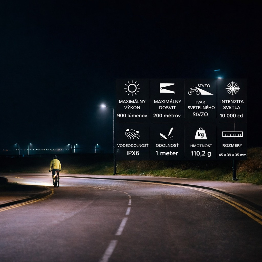 *Svetlo predné Magicshine ME STVZO 900 Lm, IPX6. V cene výrobku je zahrnutý recykl.pop.pre SR v sume 0,1248 €/kg.