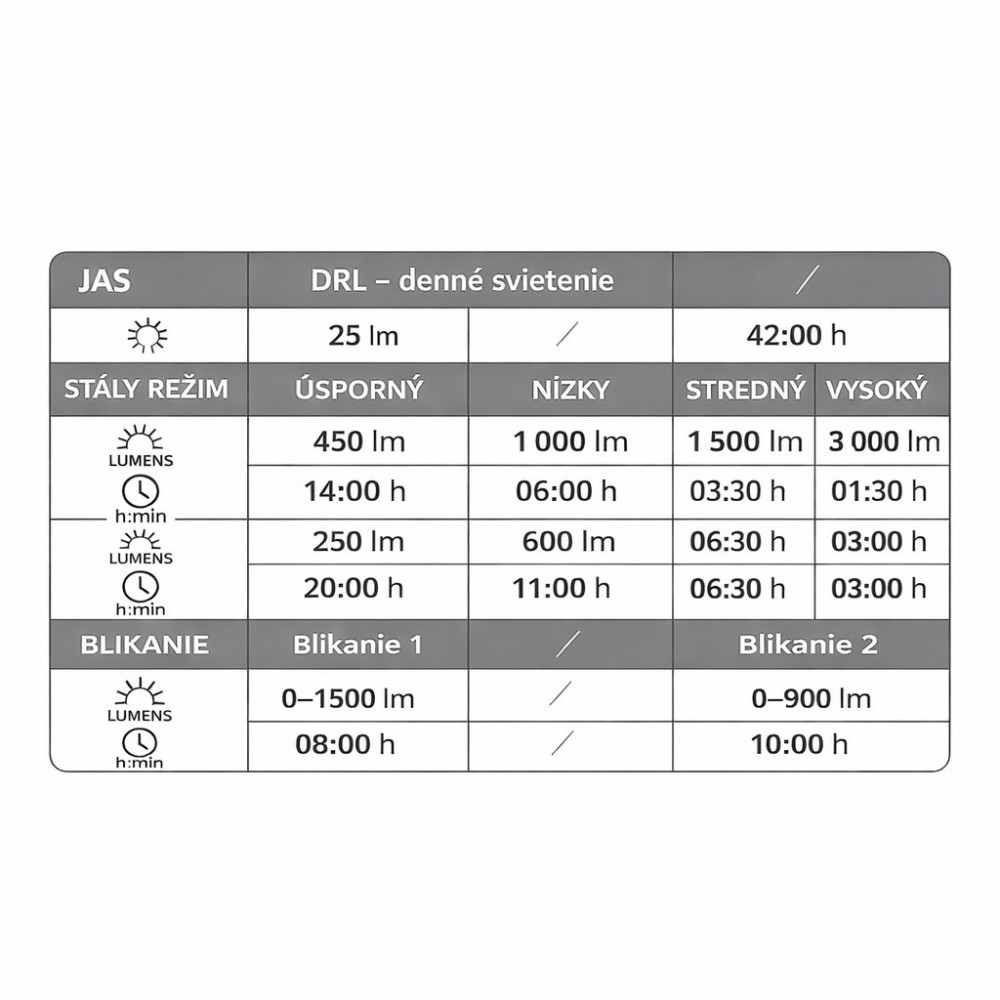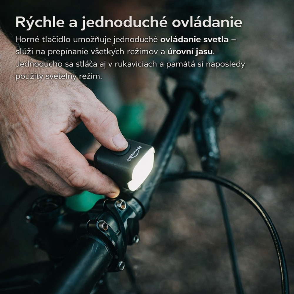 Značka Magicshine®, MJ-902s ultra-výkonné cyklistické svietidlo pre e-bike, ponúka výkon až 3000 LUMEN. Disponuje doplnkovým SMART reflektorom DRL (Daytime Run Light), ktorý je ideálny na denné svietenie. Výhodou svietidla je vedľa klasickej montáže na riadidlá, tiež možnosť použitia na prilbu. Má veľký rozsah napájania 6-12V a je tak kompatibilný pre elektrobicykle s možnosťou napojenia cez konektor – jack na externú batériu, alebo priamo na motor. Svetelný výkon až 3000 lumen. Svietidlo disponuje 4 intenzitami trvalého svietenia pre samostatnú ľavú alebo pravú LED a ďalšími 4 intenzitami svietenia pri zapnutí oboch LED súčasne. Ďalej 1 intenzitou pre DRL denné svietenie. V ponuke je aj režim klasickej blikačky v 2 intenzitách, ktorý je umiestnený mimo menu a dostupný cez dvojklik tlačidla. Možno tak svetlo presne dávkovať a z množstva režimov si vyberie každý. Svietidlo má pamäť na posledný zapnutý režim a tak máte svoj obľúbený režim vždy ihneď k dispozícii. Časy výdrže svietenia (v hodinách) sú pre jednotlivé režimy uvedené na obrázku. Výkon svetla sa odvíja od výkonu motora alebo batérie. Pri použití svietidla na elektrobicykli a pripojení na motor, svietidlo disponuje 4 intenzitami svetla a ďalej 1 intenzitou pre DRL denné svietenie. SMART funkcia: vo svietidle je integrovaný senzor intenzity denného svetla, ktorý vyhodnocuje okolité svetelné podmienky a automaticky aktivuje hlavný reflektor. Cez deň pri dostatočných svetelných podmienkach je aktívny len denný DRL reflektor s intenzitou 25 lúmenov. Dual Beam reflektor pre dokonalé pokrytie svetlom a obmedzujúce oslnenie, doplnkový reflektor DRL (Daytime Run Light) pre denné svietenie, SMART senzor intenzity denného svetla, kompatibilný aj s elektrobicyklami, vodeodolnosť proti hustému dažďu, celokovové telo, Garmin quad lock systém uchytenia. Reflektor tvorí TIR difúzna šošovka v hornej časti tvarovaná tak, že svetlo smerujúce hore láme dole. To produkuje kužeľ plynulo osvetľujúci celý priestor pred bicyklom aj v miestach, ktoré bežné cyklistické svietidlá nepokryjú. Zároveň tým znižuje oslnenie proti idúcich účastníkov cestnej prevádzky. DRL (Daytime Run Light) je doplnkový reflektor so širokým kužeľom priamo vyvinutý pre použitie počas dňa, výrazne zvyšuje bezpečnosť cyklistu na cestách, má nízky odber a svieti výkonom 25 lumen. Navyše je po bokoch malý priezor pre viditeľnosť zo strán. Reflektor je osadený dvojicou špičkových LED značky LUMINUS, model SST40 s reálnym výkonom až 3000 lumen. Dosvit až 190 metrov.Je vhodné ako univerzálne svietidlo pre všetky typy bicyklov - cestné, gravel, MTB, Downhill, E-Bike a vďaka výdrži aj pre extrémne preteky 12/24 hodín, ale aj ako spoľahlivý spoločník pri dochádzaní do zamestnania. Hmotnosť svietidla: 79g, rozmery svietidla: dĺžka 45 x šírka 43 x výška 33mm, dĺžka kábla na svietidle: 33cm.Pre viac informácií o svetlách si prečítajte priložený Návod na použitie. Vyberte si prepojovací káblik podľa typu motora: Shimano/Bafang, Yamaha, Bosch, Bosch 4.generácia.