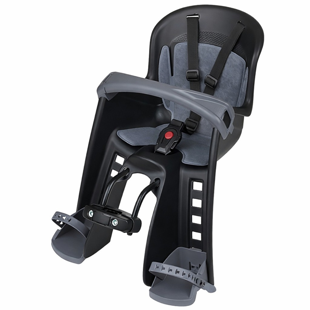 značka Polisport Portugalsko, čierno - sivá, predná verzia sedačky s držiakom na prednú rámovú trubku alebo predstavec kruhového i oválneho priemeru 22 až 40 mm, hrazdička, trojbodový pás, pre deti do hmotnosti 15 kg, nastaviteľné opierky na nohy s bezpečnostnými popruhami, trojbodový bezp. pás pre zaistenie dieťaťa, odnímatelná výstelka a taktiež umývateľná, držiak na sedl.trubku pre rýchlu montáž/demontáž sedačky