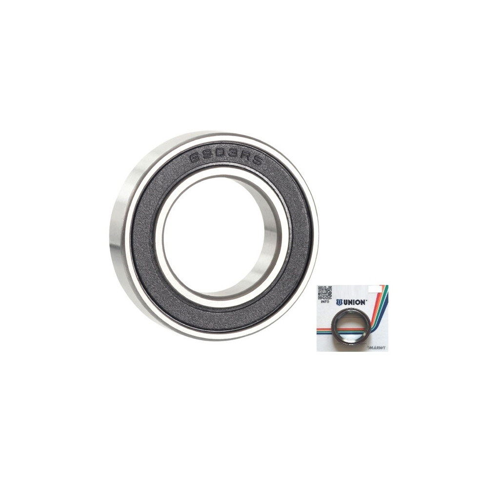 značka Union, Jednoradové guľkové ložisko vysokej kvality s jednoduchou konštrukciou. Je nerozoberateľné a bez plniaceho otvoru, po obidvoch vnútorných stranách oceľových krúžkov má hlboké obežné dráhy, takže dosahuje relatívne vysokú únosnosť a môže zachytávať radiálne i axiálne zaťaženia v obidvoch smeroch. Je vhodné aj pre vysoké frekvencie otáčania., kontaktné gumové tesnenie z obidvoch strán , vhodné pre prevádzkovú teplotu od -40 °C do +100 °C.