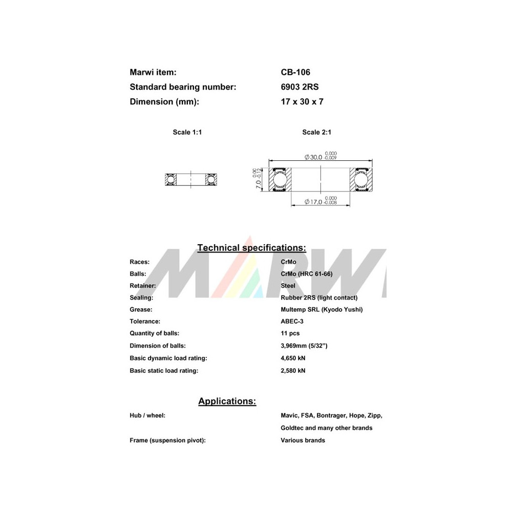 Ložisko CB-106 6903 2RS, 17x30x7 do náboja, ks