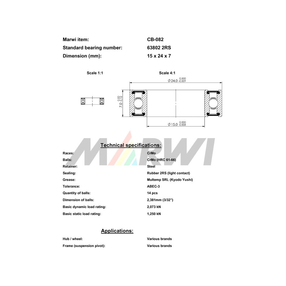 Ložisko CB-082 63802 2RS, 15x24x7 do náboja, ks