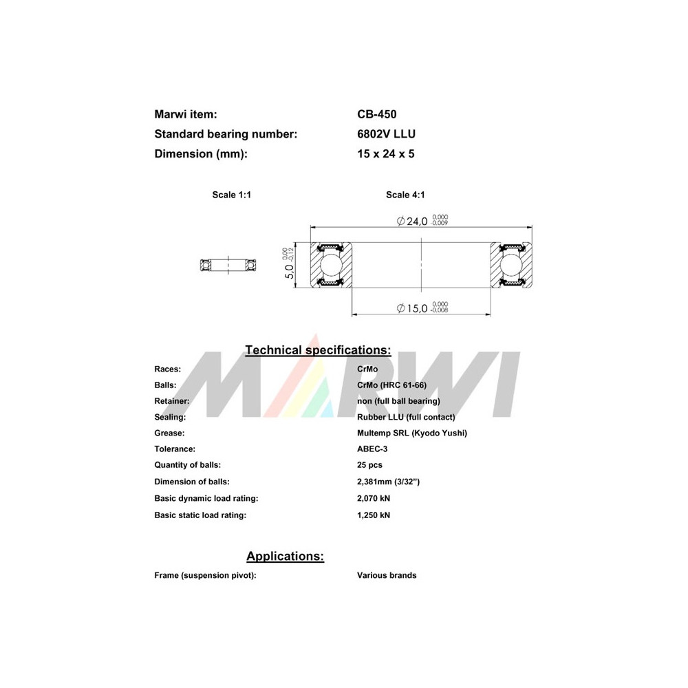Ložisko CB-450 6802V LLL, 15x24x5 do náboja, ks